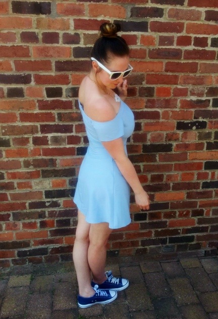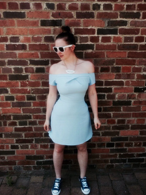 This is one of my fave dresses of the season – i adore pastel colour, skater style and off the shoulder top (no tan lines, woop woop!). I was inspired a little in the styling by Lilah Parsons by adding a chunkier necklace (my face lips,mmi sure you recognise them by now!) and Converse to make the dress a bit more casual and ‘ghetto’. However, I also popped on a pair of cork heels and my quilted RI bag and wore this to a wedding recently too, so very versatile. The dress comes in sooooo many any colours (I’ve insta-picced a few of my faves below) I badly wanted the mint version but it sold out in my size, boo!