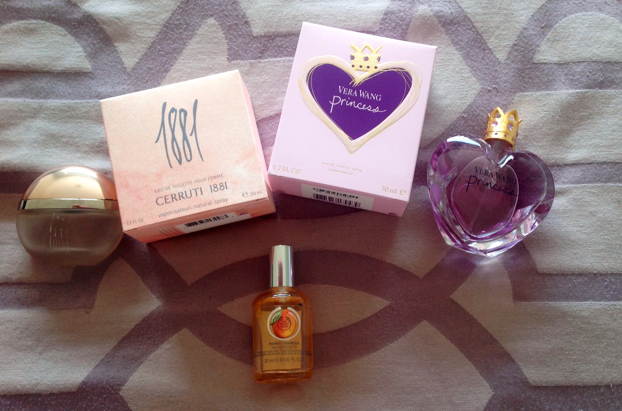I have 2 scents for daytime so I can either smell girly or fruity- Body Shop Mango EDT (http://www.thebodyshop.co.uk/bath-body-care/eau-de-toilette/mango-eau-de-toilette.aspx) and Vera Wang Princess. For the evening I also have 2- this Cerutti 1882 is my go to, I also have another one for date nights with the Mr (which is for me to know, hehe).