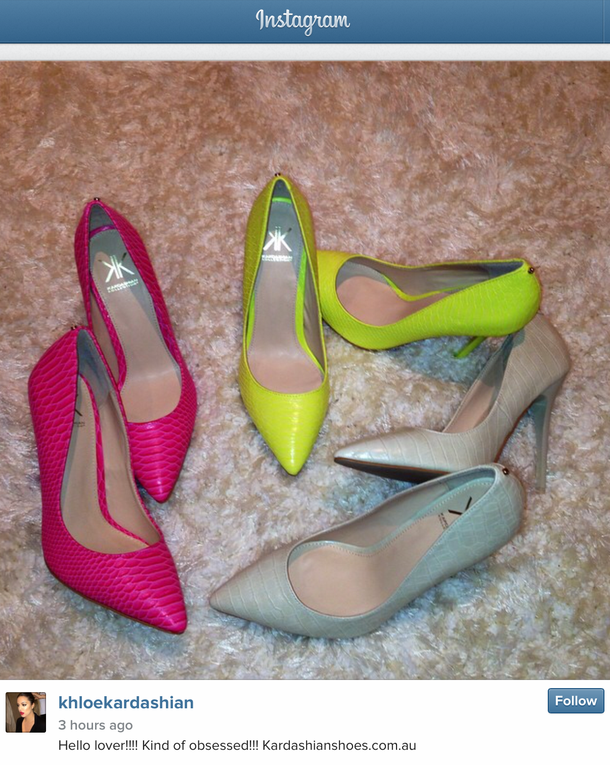 Ri Ri be bringing it! The look manages is typically Rihanna- attention grabbing and with the colour and a bit grunge with the jewellery, but the mixi length makes it feel a classier whilst the monochrome heels/clutch keep it all about the dress. I feel compelled to source a high street version of this look for a future post! The shoes are courtesy of the Kardashian Kollection via my fave Khloe’s Insta page. Sadly I think they’re only available in Oz…c’mon girls, bring the goodies to us stylish lovelies in the UK!