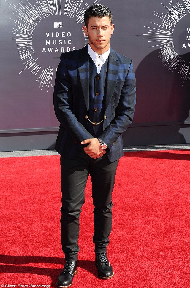 Music award dress can be awkward for men- they seem to only have the option to wear a proper suit and look very formal, or wear jeans a tee and try to not try and look a bit trampy (*cough cough* Wiz Khalifa). So seeing Nick go for a suit but totally funk it up with the blue tartan print jacket is an awesome compromise! Adding in the tougher footwear he looks smart yet edgy and very dapper. I salute you Jo bro!