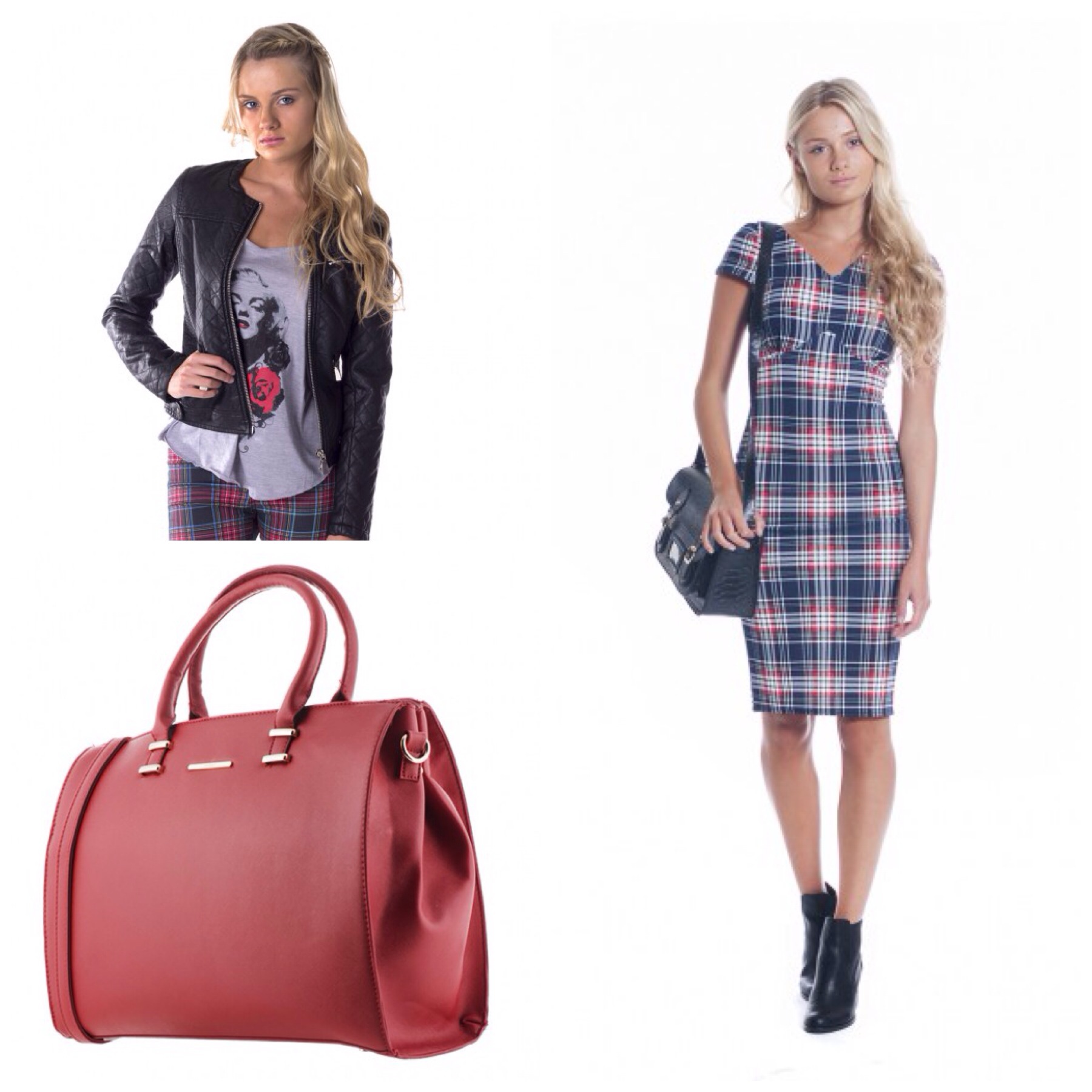 I thought this look channelled a bit of VB who as we know is a staple of LFW (and who just killed it with her presentation at NYFW) with the simple shape of the dress which is going to be flattering and also comfortable to move around in when running in between shows and parties. I went for a print as I’m a total sucker for tartan and the berry red colour is going to be huge for the coming season so it seemed perfect! A big bag is a must to carry around all of your fashion week essentials (make up/hair stuff/tablet/phone etc) and this one picks up the red in the dress as well as it looking super stylish draped casually over your arm as you strut into Somerset House. I’m not a head to toe chic gal, so I picked the pleather biker to toughen up the look a little which the tartan could also tie in with as well. I’d finish off with either some black pointed courts or shoe boots depending on my mood that day – smoky Cara D eyes and a more neutral lip.