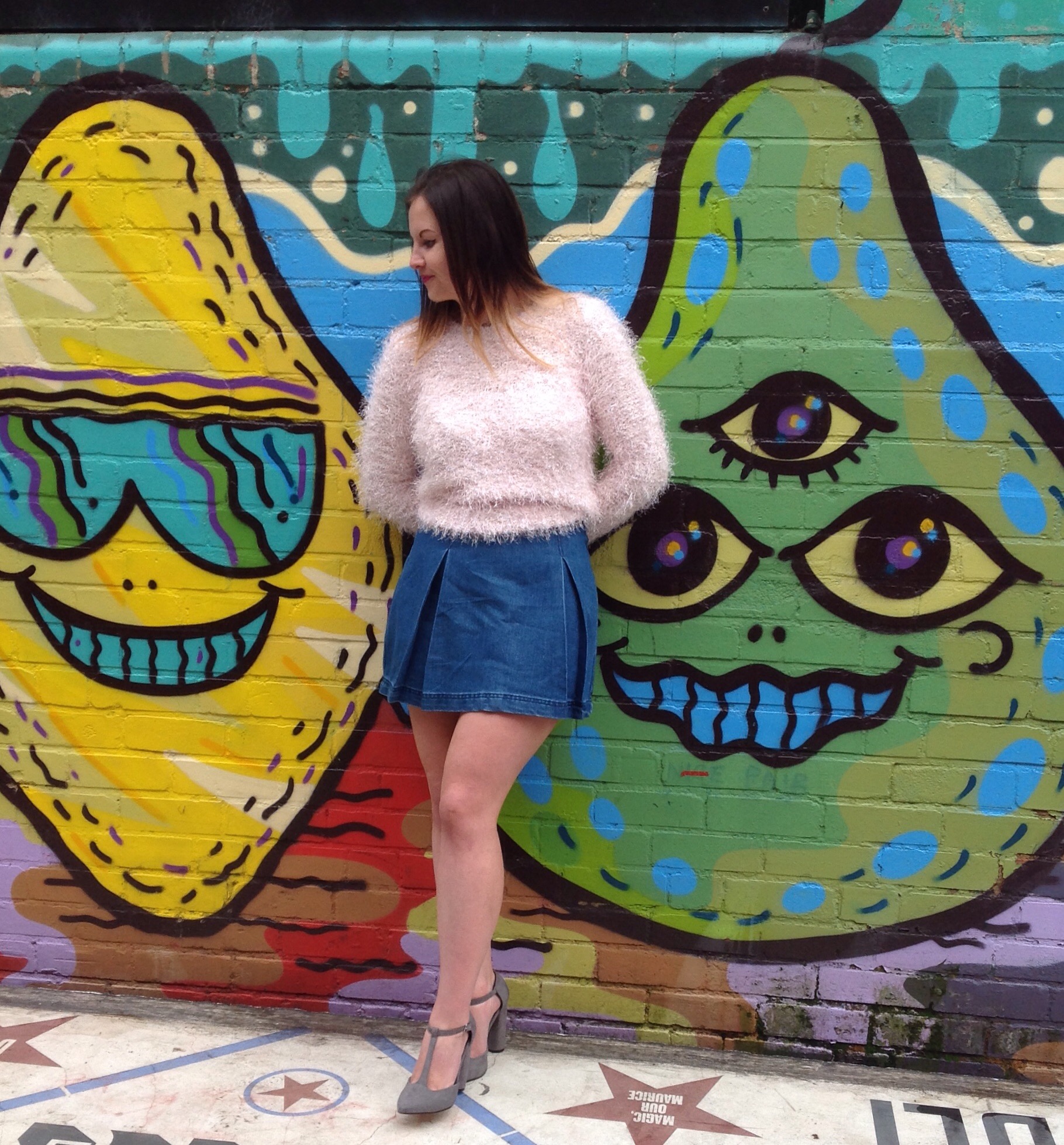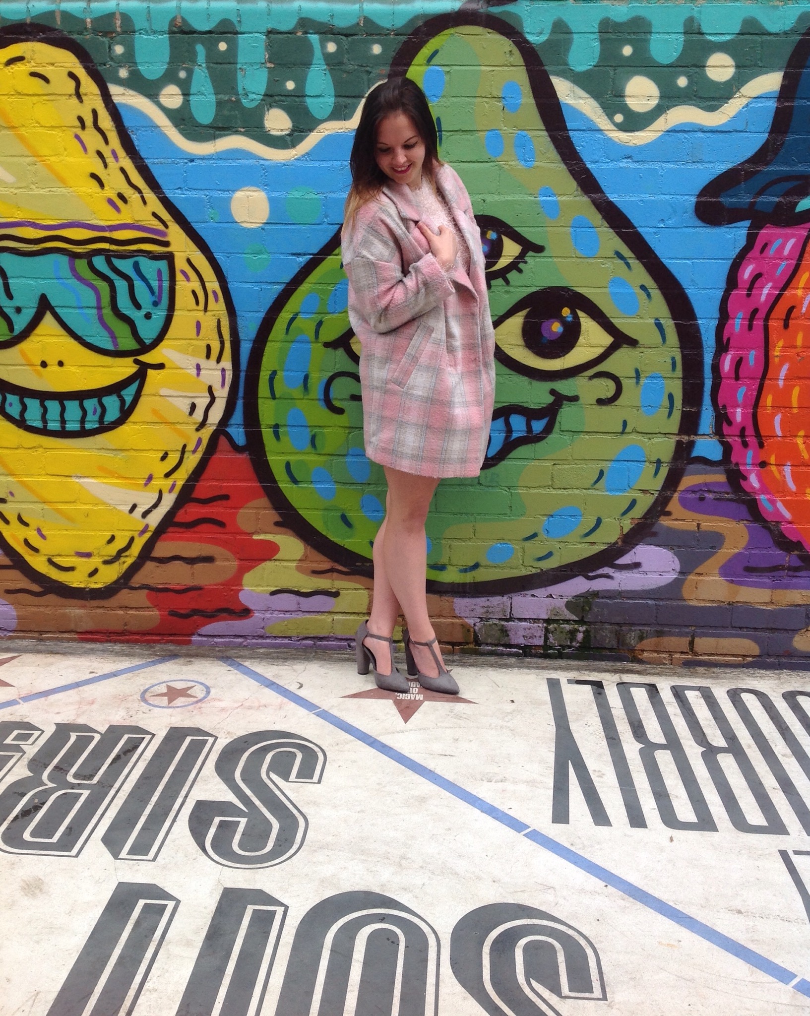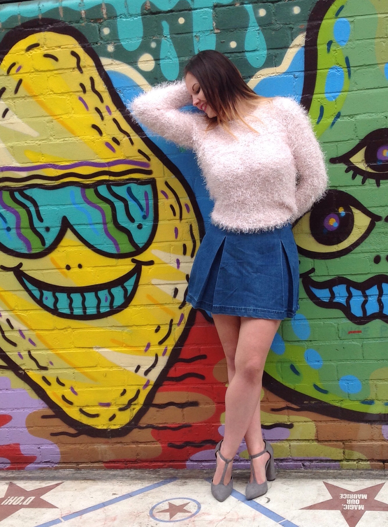 So, I, like, totally meant this look to be all about Cher (see what did there?) but looking at the shape of the coat I kind of felt it also channelled a bit of Cilla Black circa 1960 which was is another era of fashion I completely heart (and thanks to Sheridan Smith is being brought to a new generation). The shape of the coat is a cocoon/boyfriend style so if you’re a bit unsure of hiding your figure then keep it open and the silhouette of the bottom half slimmer. This jumper is girly overload! But very warm so a great buy and does come in other colours for the less girly fashionista. Again with this one I tried tucking it in and leaving it out, whereas I think it works both ways I think for me I prefer it tucked in to show off the full pleat detail at the front of the skirt. The same grey shoes as before pic up the colour in the jacket too so keeps the look tonal. It’s a look that’s cute, girly and a bit retro – hit Hit HIT!!