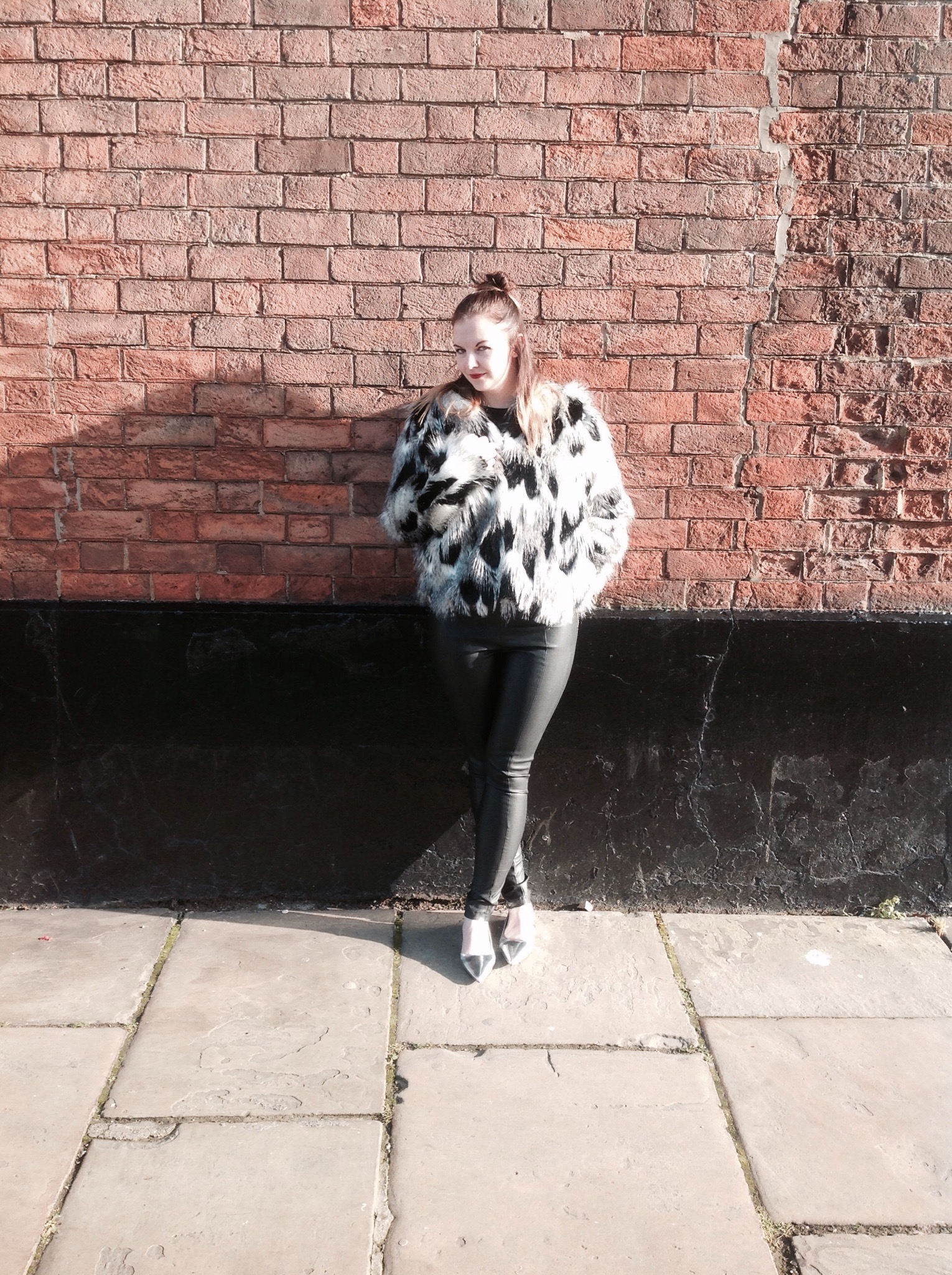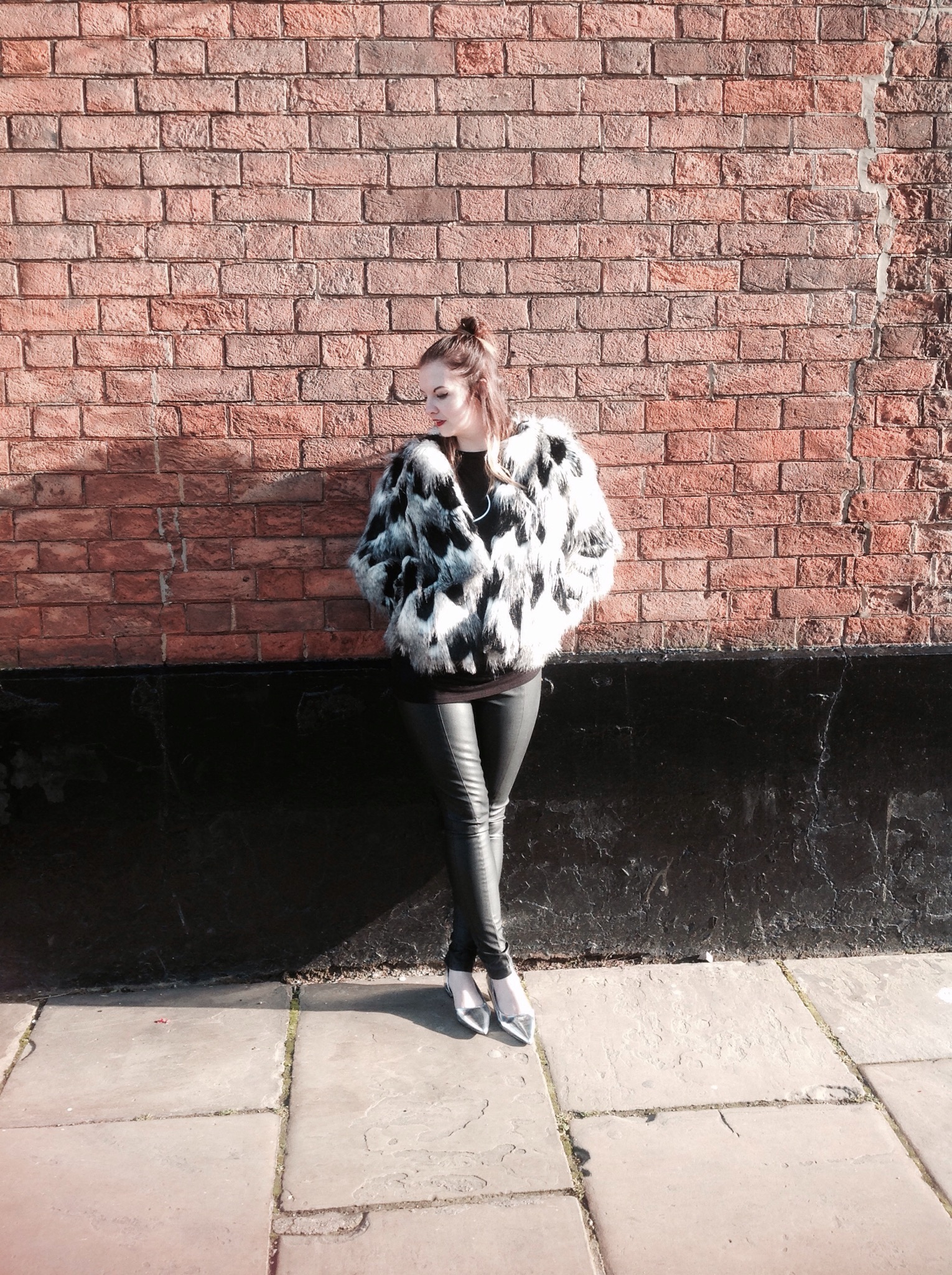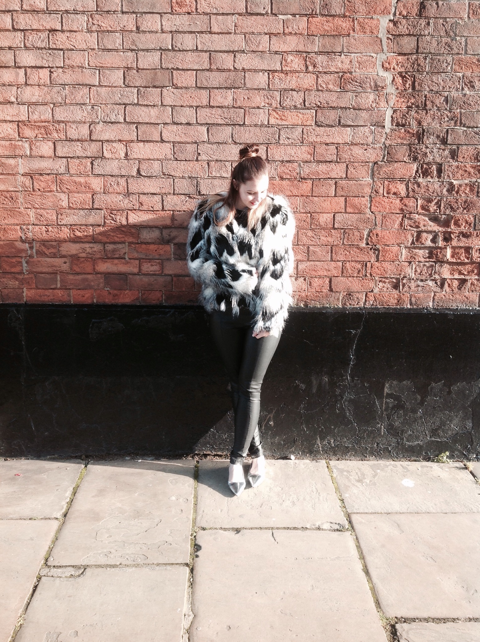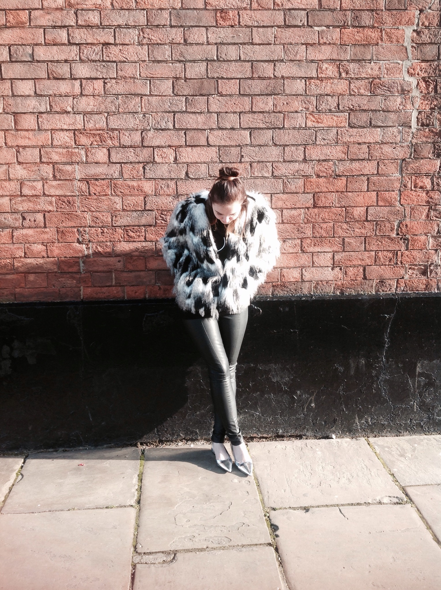 I adore textures. They’re making potentially ordinary outfits look a little bit of sumthin’ sumthin’ this season. I had a little play with it when I did my fluffy jumper/denim skirt/wool boyfriend coat combo back in September but I’ve been waiting to do a different take on it ever since…so here it is! I adored this coat (a gift from mama Alice) so much in the shop that I almost forgot I had it on and tried to leave, it just felt like it had just been waiting for me to take it home! See if you can spot the shot where Mr Alice shouted “Move your hair, it’s covering your left boob!” Just as an older couple were walking past. Oopsie!