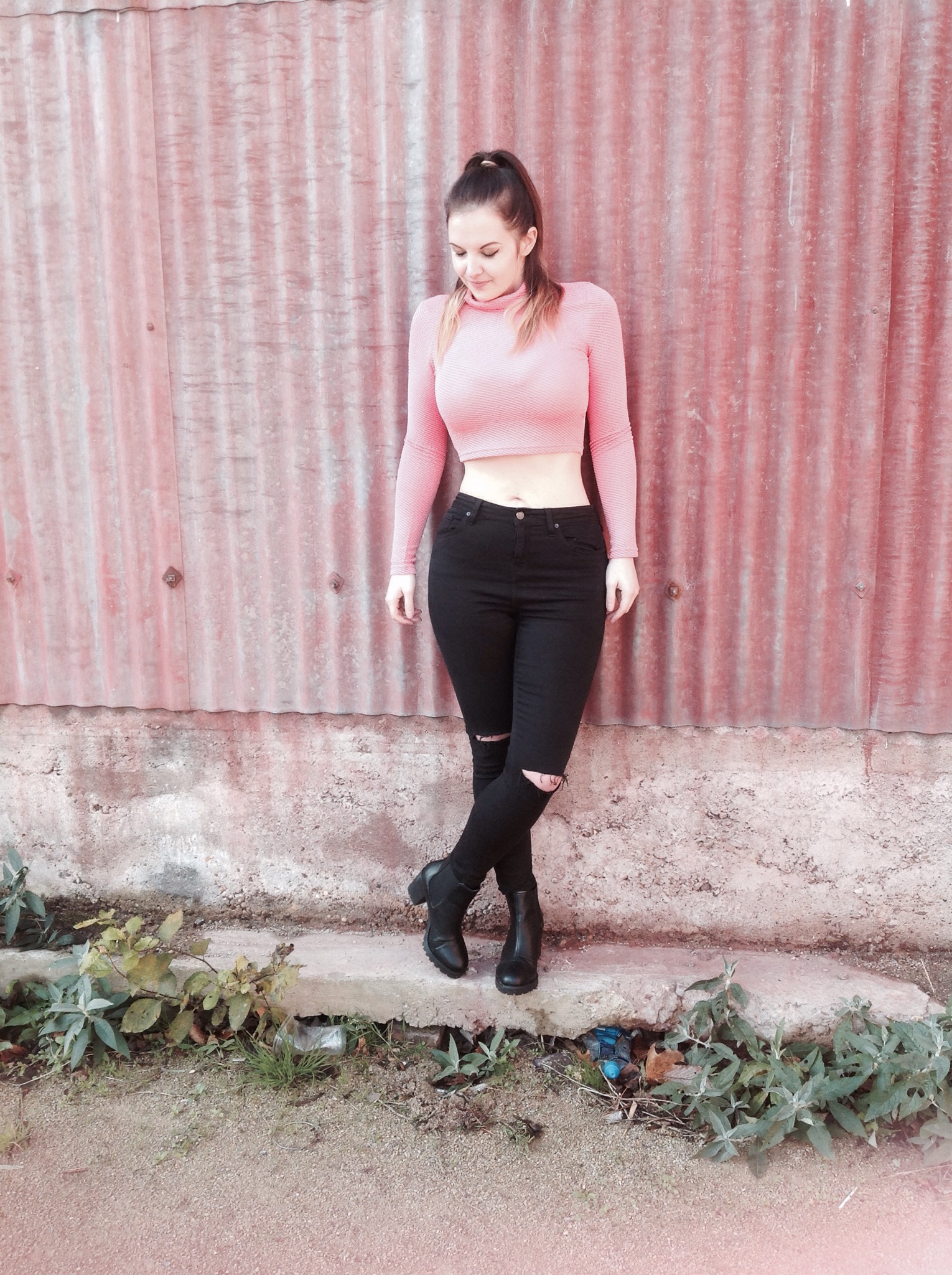 This roll neck is part of a co-ord by Lauren Pope (my third consecutive blog ft ITS), a nude bra underneath works the best as the fabric is a little sheer, but almost silky feeling and a textured in. Away I’ve not seen before which brings a bit of quirk. You’ll also notice that I’m wearing an actual pair of real jeans, the first proper fitting pair I’ve bought in years….result!! And also fulfilling a 90s childhood dream of owning a pair of ripped jeans, sad but true! These are the softest comfiest pair EVER, anyone who has seen me around uni lately will probably have seen me wearing them as I pretty much only take them off for bed at the minute (again, probably sad but very true). I topped it off with my fave 90s hairstyle, there are actual photos of my sporting it but not quite as polished (I was called ‘fountain head’ between ages 11-12) and my trusty cleated boots. I’m usually all about a colour pop lip but I went the whole nine(ties) yards and did a nude which I was surprisingly happy with – I used Miss Sporty Instant Colour & Shine Lip in Playful Beige.