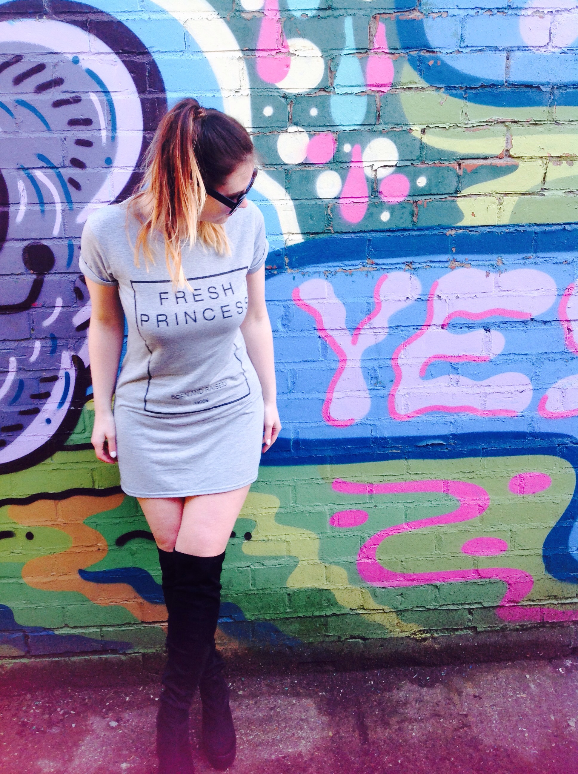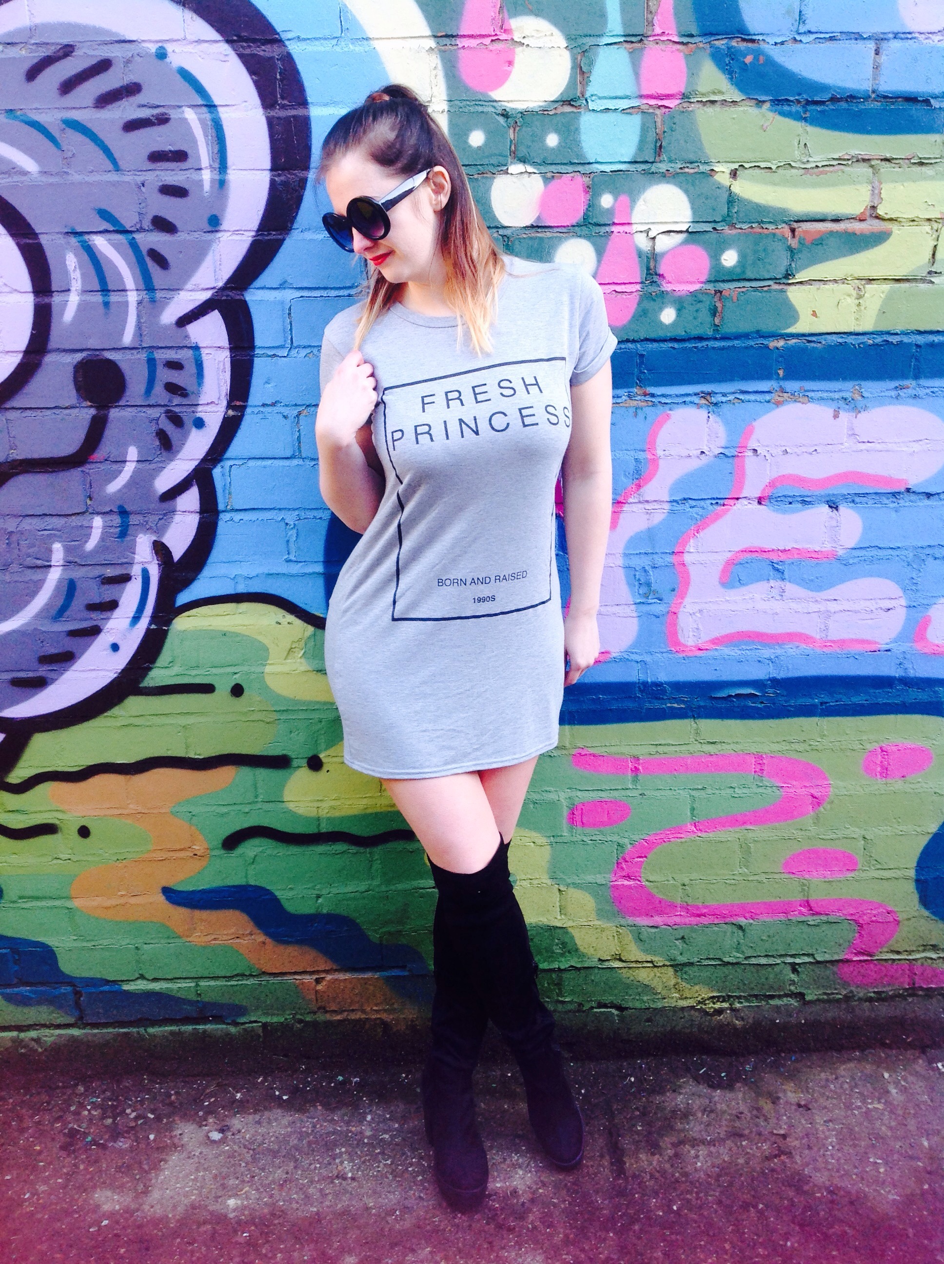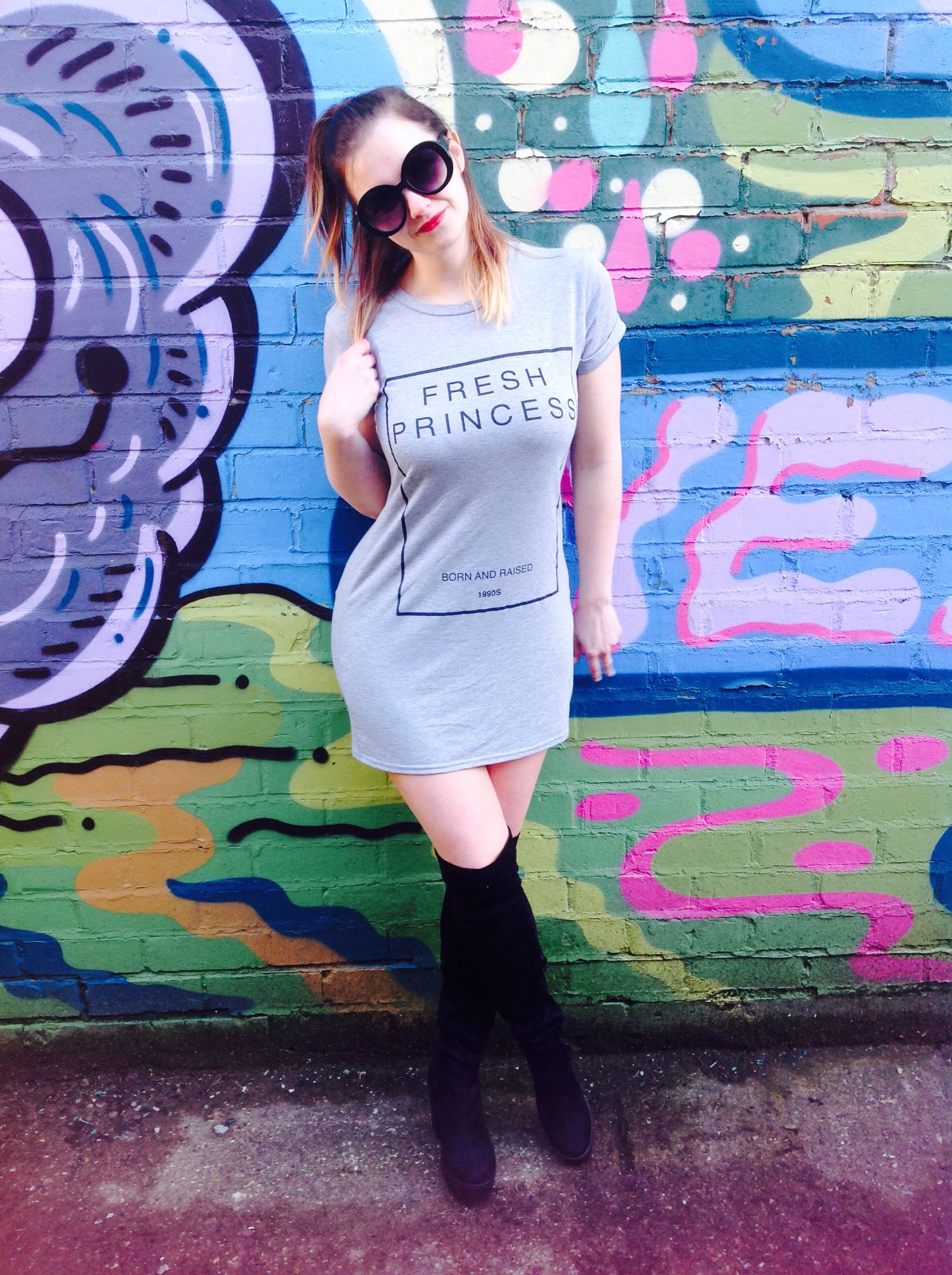 This wall totally gave me Fresh Prince vibes so was the perfect backdrop to go with this outfit. T-Shirt dresses are perfect for this time of year as they’re a bit more forgiving after all the festive indulgence, as well as being easy to dress up/down. I’ve also worn this over jeans and it looks fab for those not keen on getting their legs out in the winter chill! As you can see I’m still obsessed with my boots – be prepared for this continue…oh, and I’ve discovered they come in more colours too so I may be buying more!