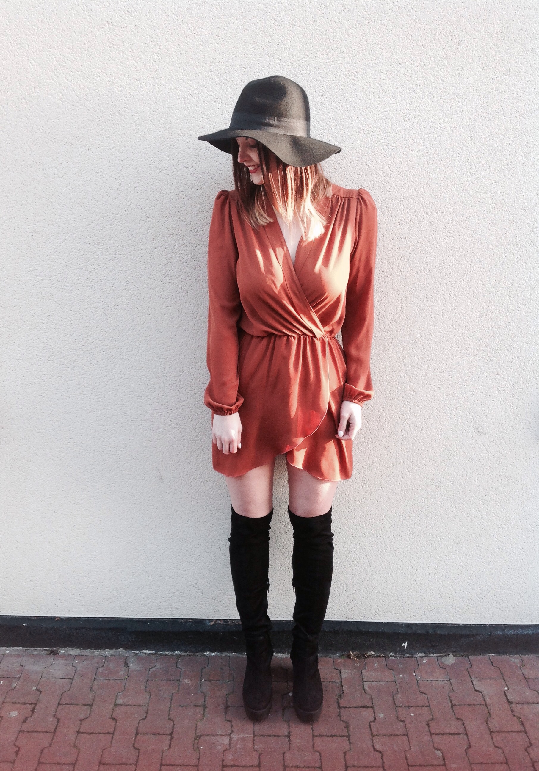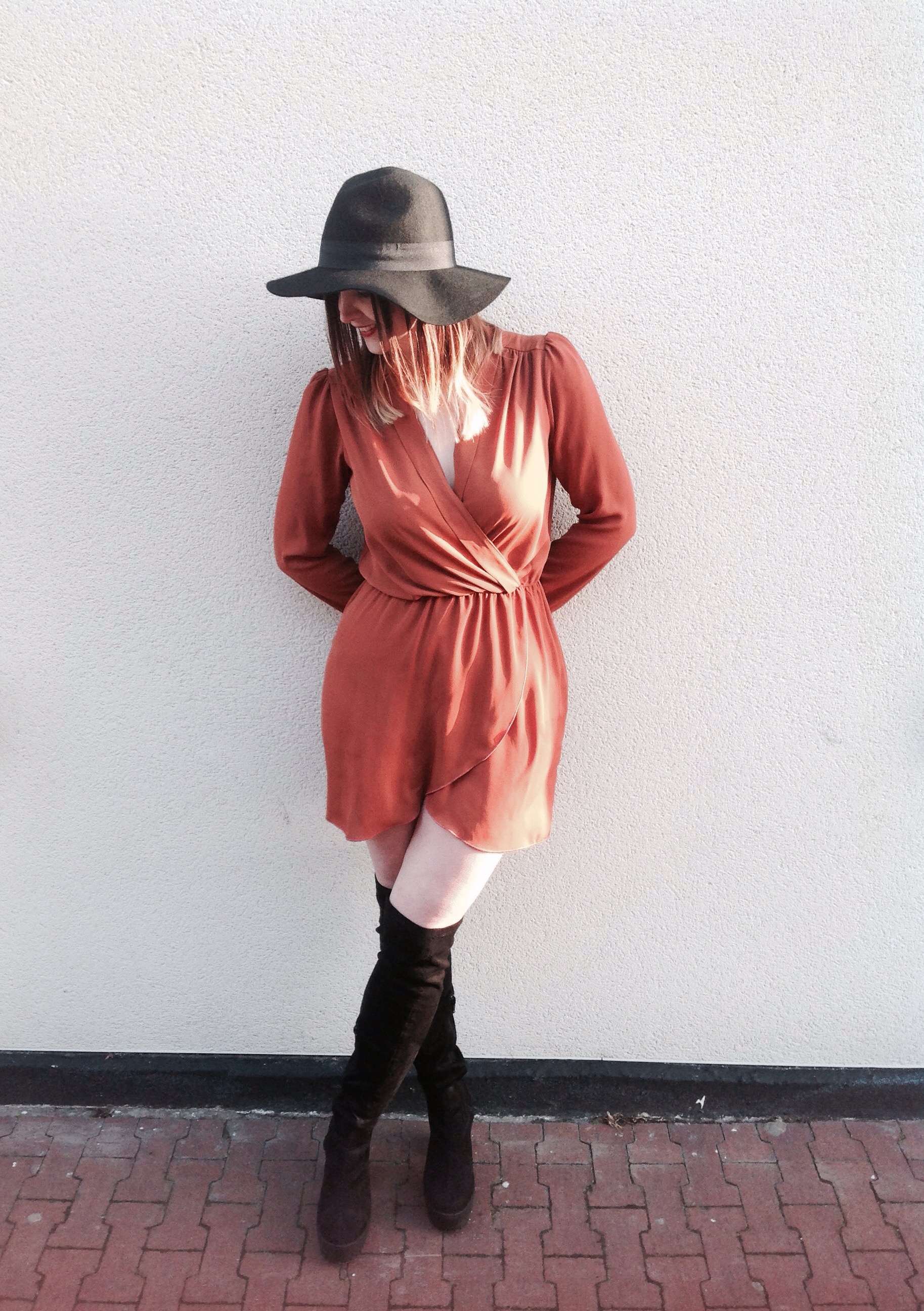 I’ve been wearing a lot of black/white/grey in A/W so far but have a growing obsession with camel/brown. So when I saw that this wrap front dress that I already have in purple (which you may remember from my Hull Daily Mail post in October last year if want to take another look) in this gorgeous rust colour it seemed perfect. I already like the style and fit of it after all!