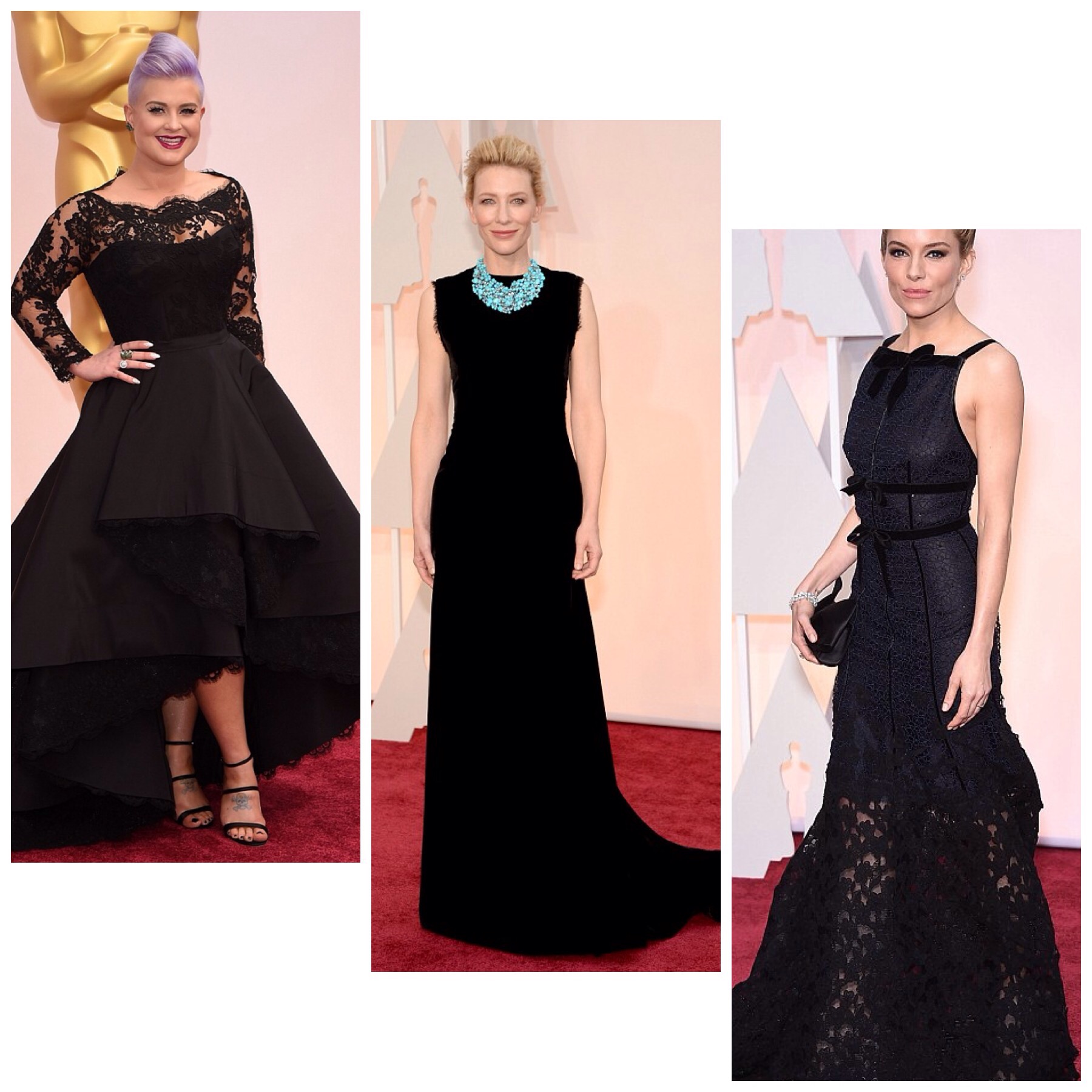 The best Kelly O has looked this awards season – great mix of youth and fashion whilst still feeling Oscar appropriate. The one I’d be most likely to wear I think. Cate’s statement turquoise is just inspired, she’s always so fierce with her choices and owns it which makes her stylish in that alone! Sienna has literally pulled this lace beauty from the NYFW runway and is a perfect choice as its classically beautiful whilst the bottom detail keeps it fresh