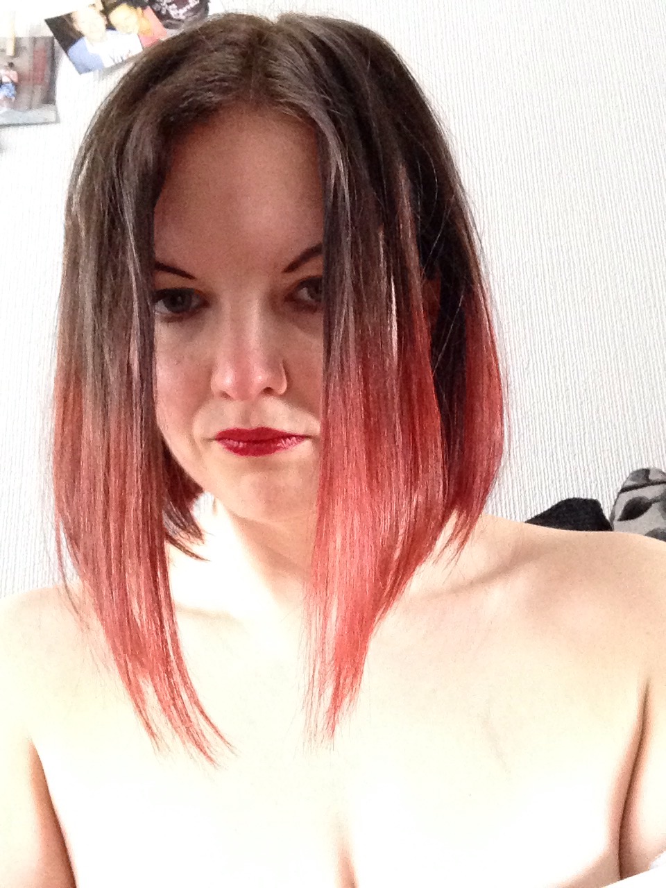 I’ve used this Superdrug own brand colour for years (even before my broke ass student days) it’s great value and the colour is a perfect match to my natural colour. I used the Loreal Wild Ombre for my previous blonde, and seeing the new red shade made me feel a bit naughty and impulsive! Little hint- even if you’re a home dye pro I’d get help applying this and have an old sheet/massive old towel, you need that second pair of eyes to watch for the colour dripping on your skin and over the surfaces (I say this with red fingernails/neck and a now dodgy looking stain on my bathroom floor!). I applied them on the same day, one after the other. I kept the brown to just where the darker part of my hair is in phase 1 so that I wasn’t overwhelming my hair with extra colour when applying the red.