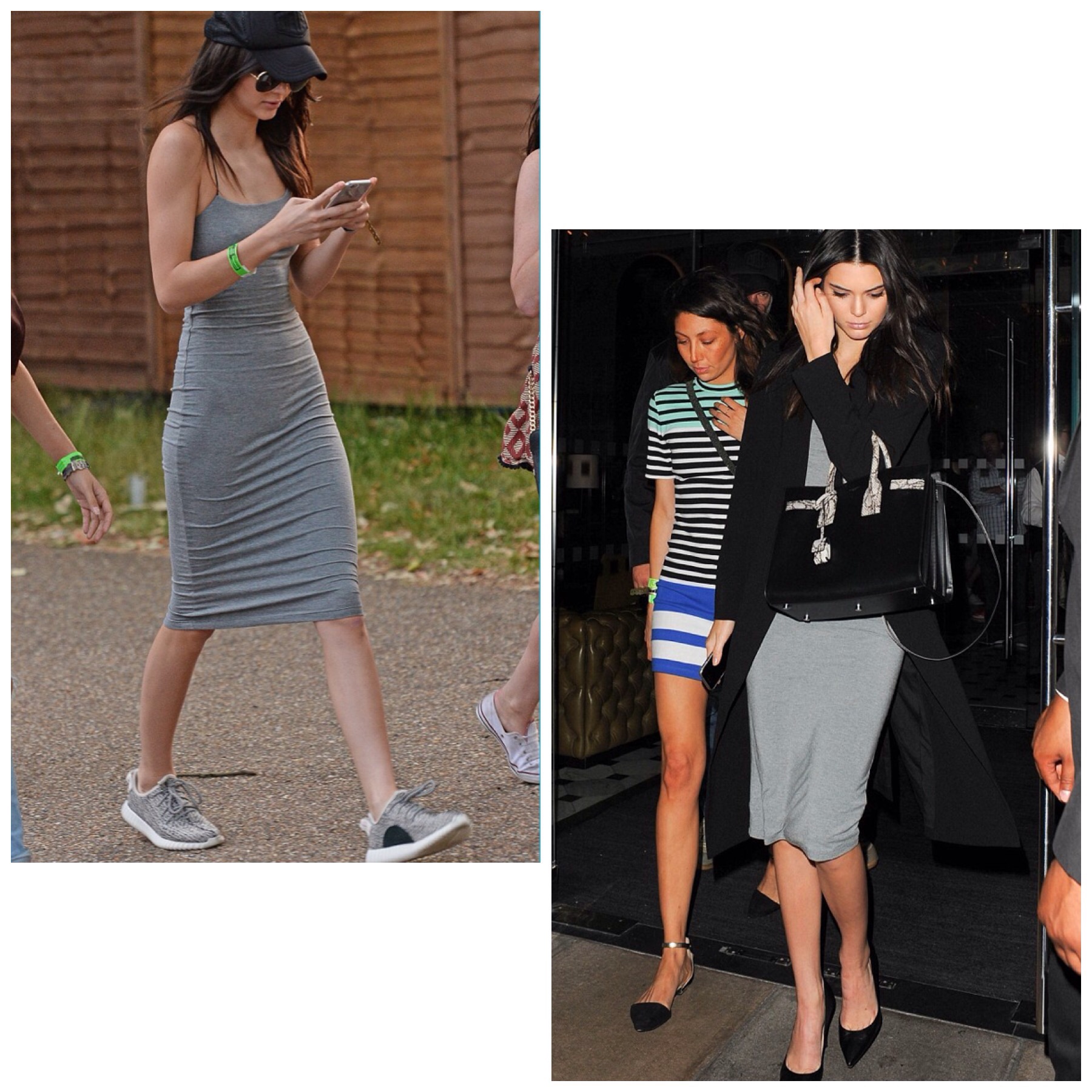 We all strive for a great ‘day to night’ piece, and this is Kendall’s take on that Holy Grail. It’s not what a lot of people would probably think of since its jersey fabric but it’s ideal for the humid London weather flitting between festival and dinner. The spaghetti straps are also practical for slipping off the shoulder to avoid tan lines in the day but look dressy in the evening whilst hitting that 90s trend I’m still enjoying, so definitely job well done Kenny. There’s a brilliant copy of this dress at Pretty Little Thing for the absolute steal if £8!! It comes in quite a few colours too.