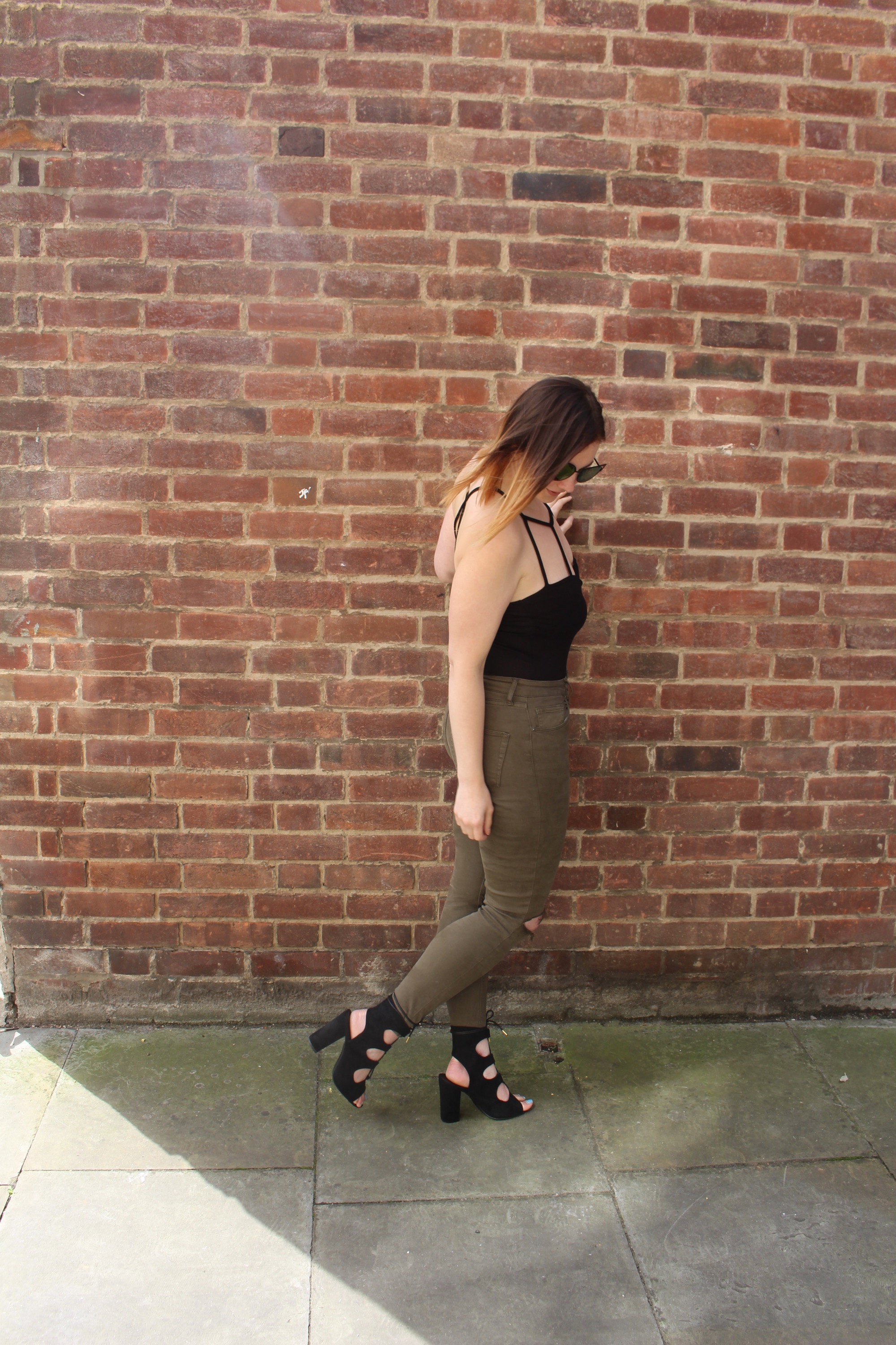 Bodysuit – Boohoo (sold out, similar here)/ Jeans- Top Shop (sold out in khaki, other colours here)/ Shoe Boots – Public Desire/ Sunnies – Quay Australia at Top Shop