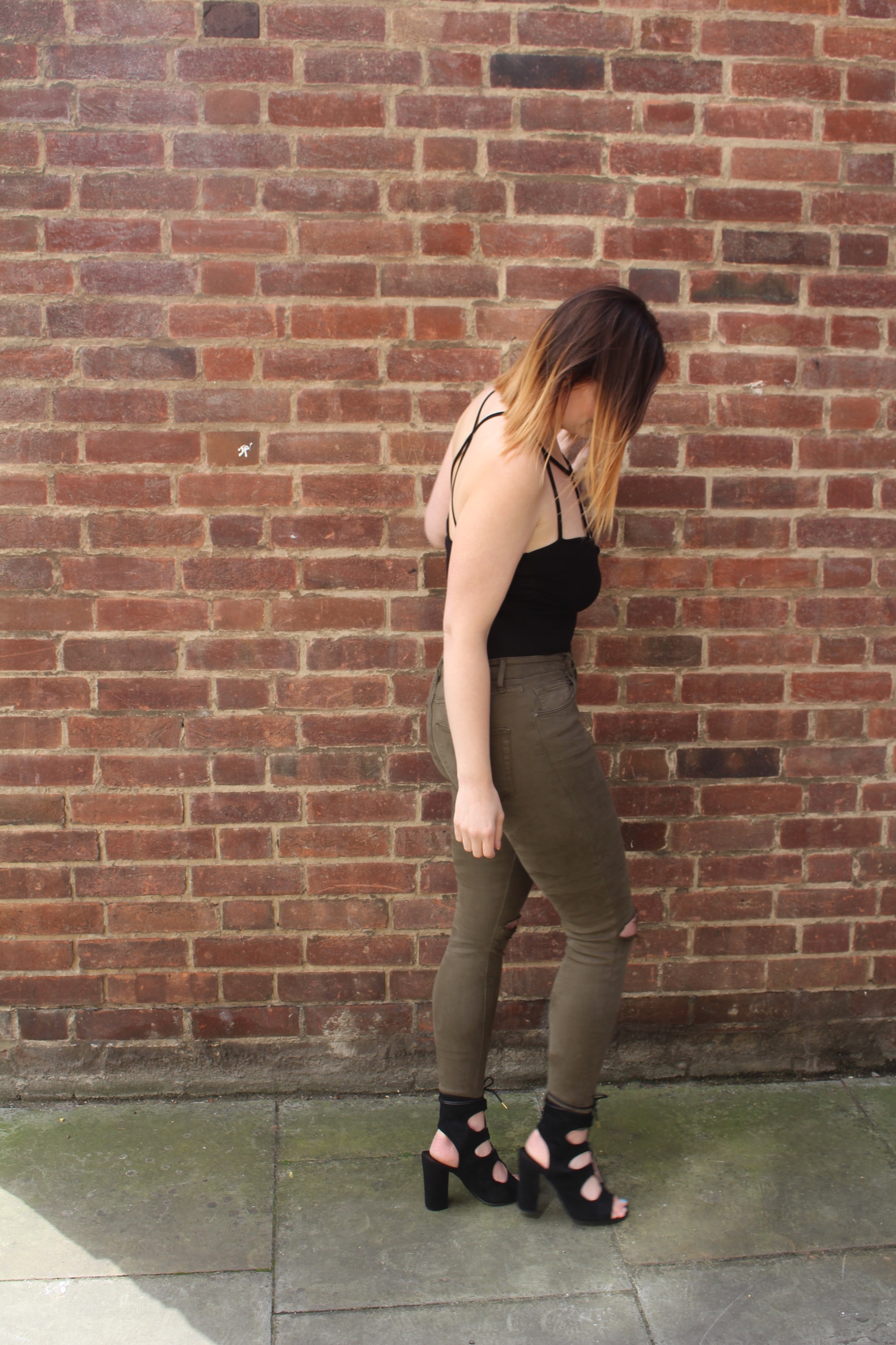 So with this is mind…I decided that I was feeling warm and summery, and I wanted to feel/ appear sassy yet casual to the world at large. For me this meant ripped skinnies (doesn’t it always?) lace ups and some HAWT ass shades