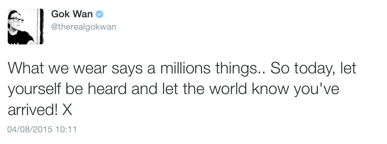 The other day, this tweet from the bangers-obsessed fashpirational Gok Wan popped up on my feed