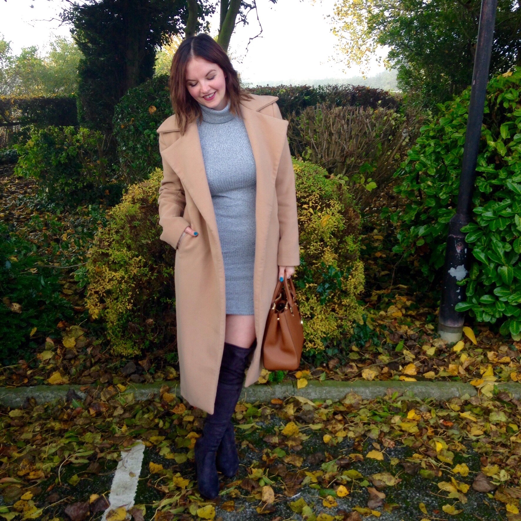 When I go to a restaurant for lunch I feel it’s important to strike a good smart/casual balance balance- you want to be comfy as you’ll be eating a LOT, but you’re not at a pub so a t shirt doesnt really cut it. Easy breezy choice- fitted jumper dress and long boots topped off with my fave camel overcoat. Sorted.