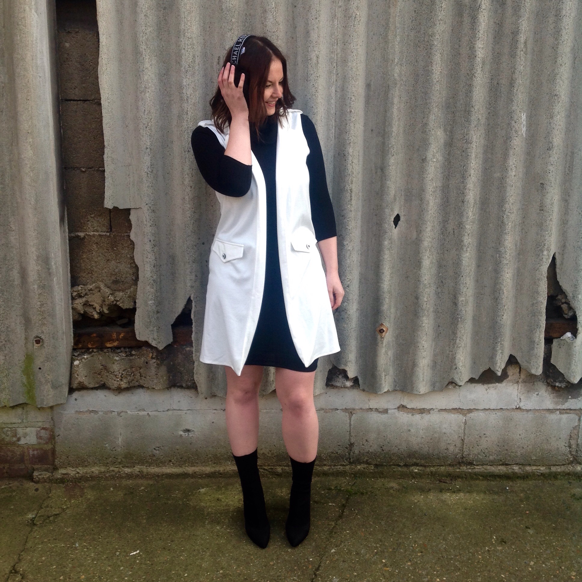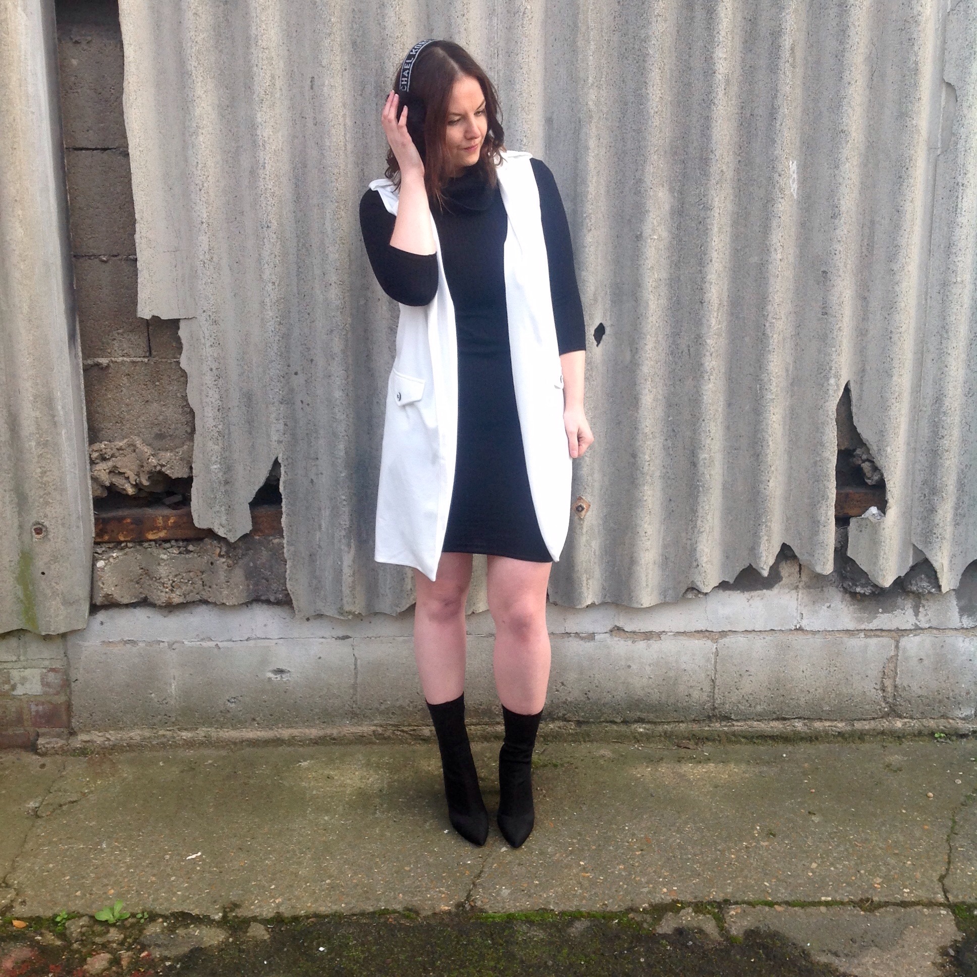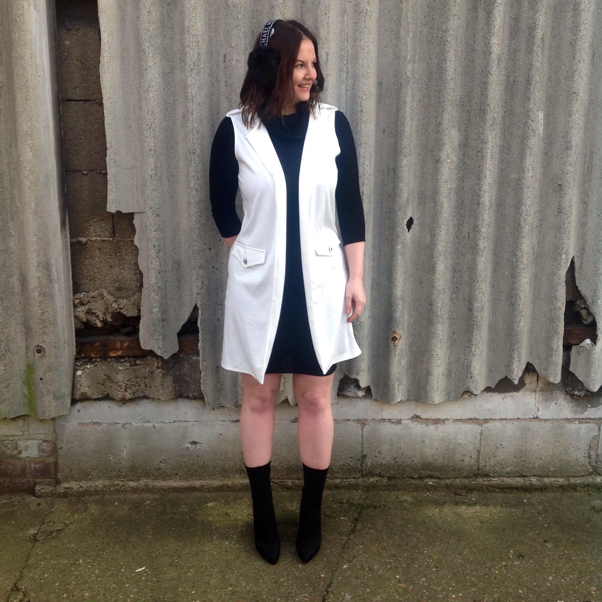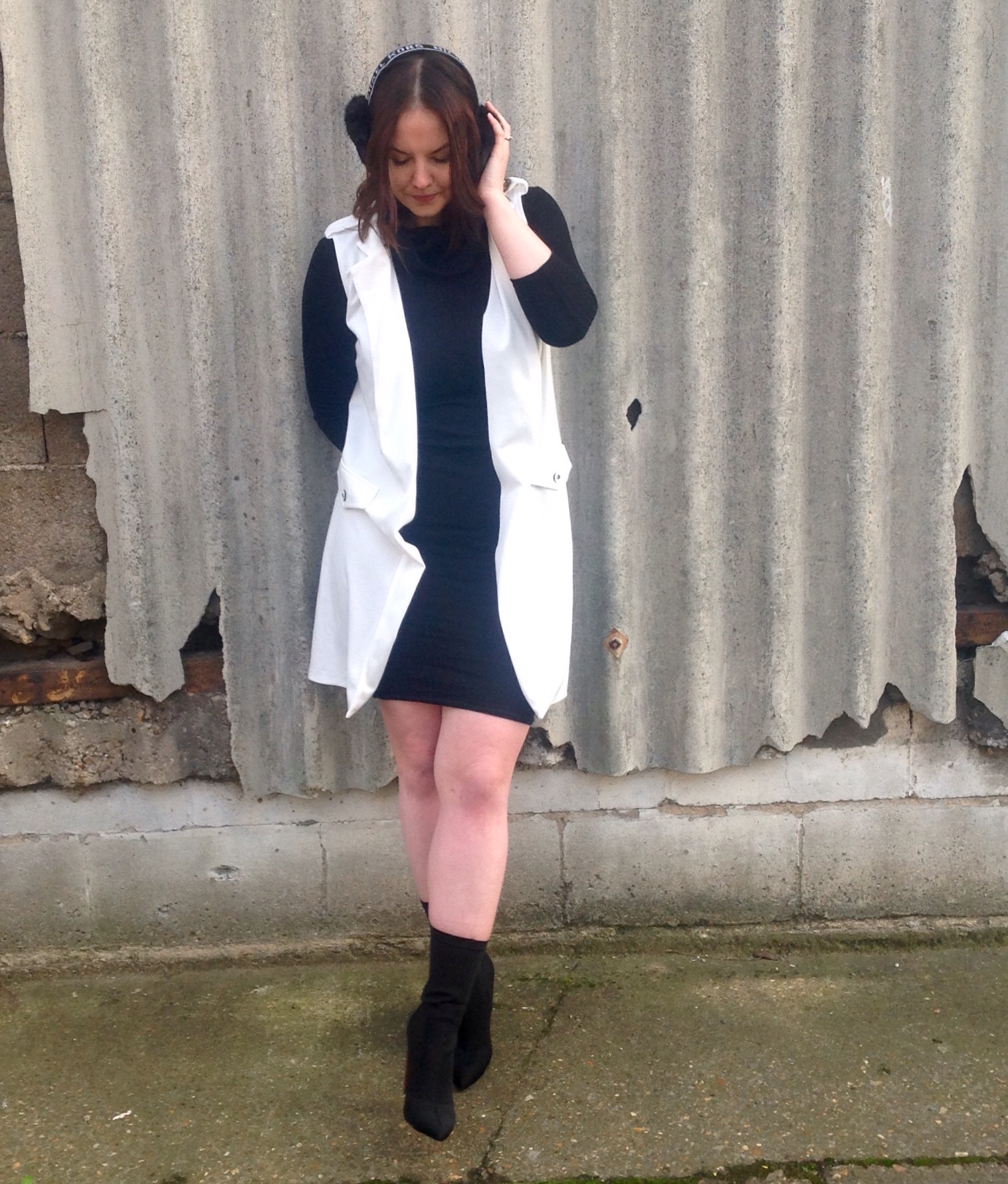 Sleeveless blazer Celeb Look UK/ Dress New Look/ Boots Ego/ Earmuffs Michael Kors at TK Maxx