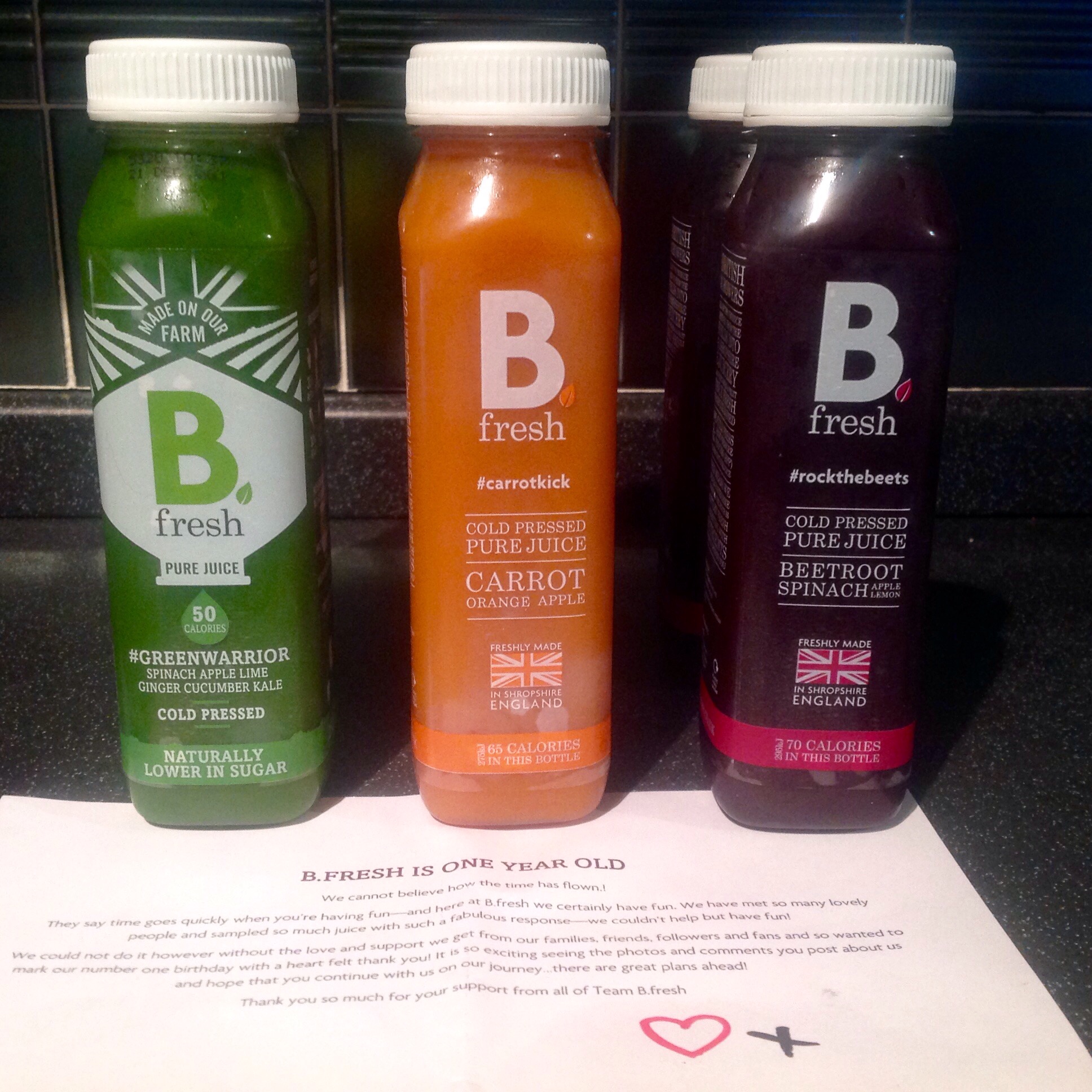 Last week the lovely people at B fresh sent me a box of their juices to celebrate the company’s first birthday. I was particularly pleased by this because they didn’t send it to me because I’m a blogger- they sent it because they had seen that I’m one of their customers and wanted to thank me (and a few of their other customers too, if you check out their Twitter feed) for my support.