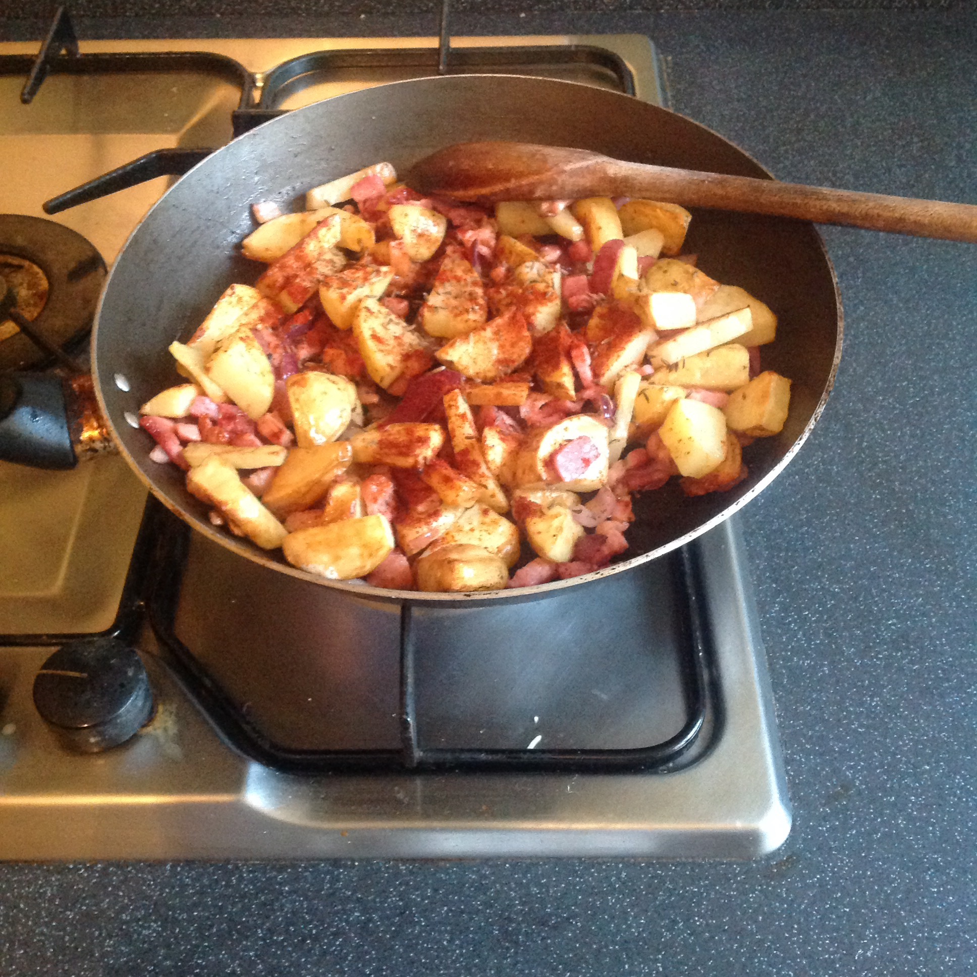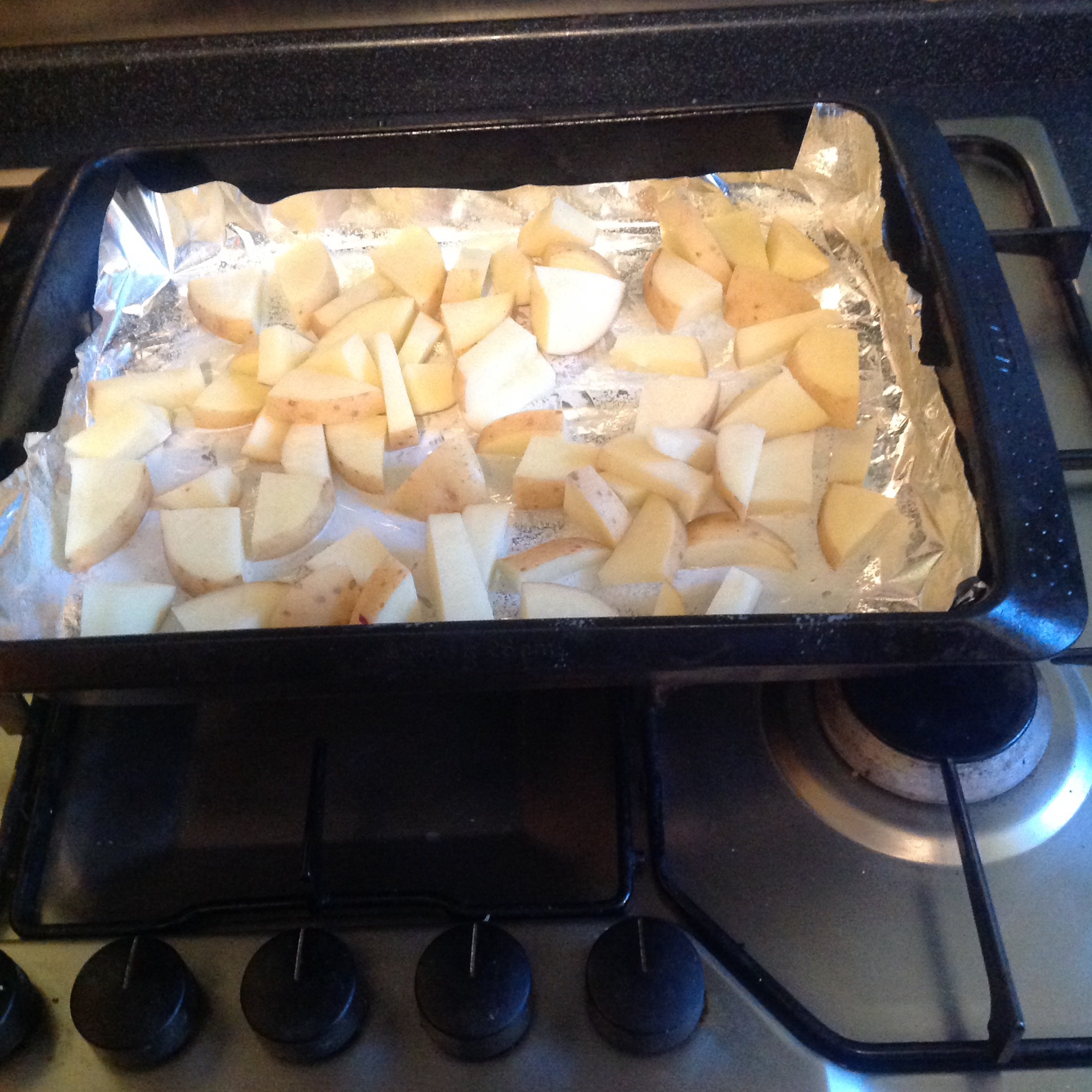 To get the potatoes nice and crispy in the outside, I left the skins on and oven cooked them for 25mins