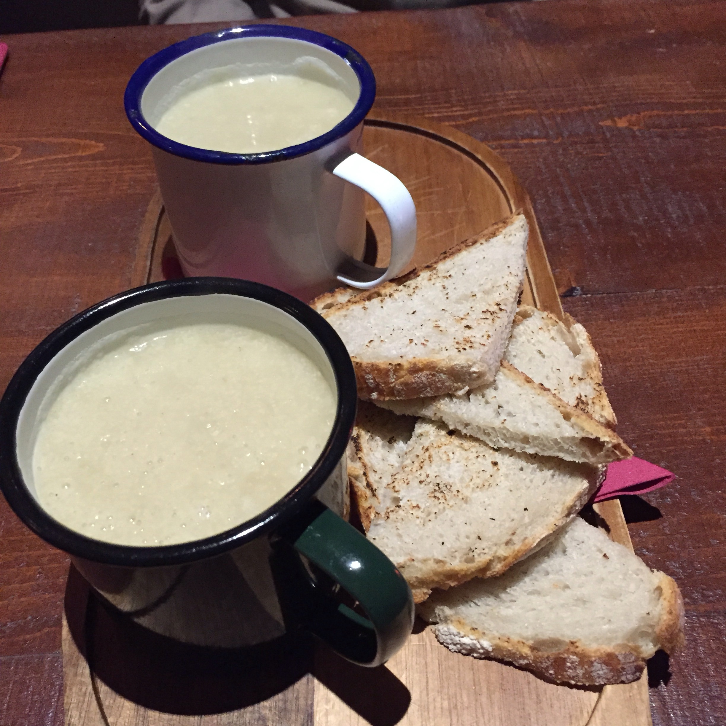 Soup of the day – celeriac and apple with truffle oil served with sourdough bread