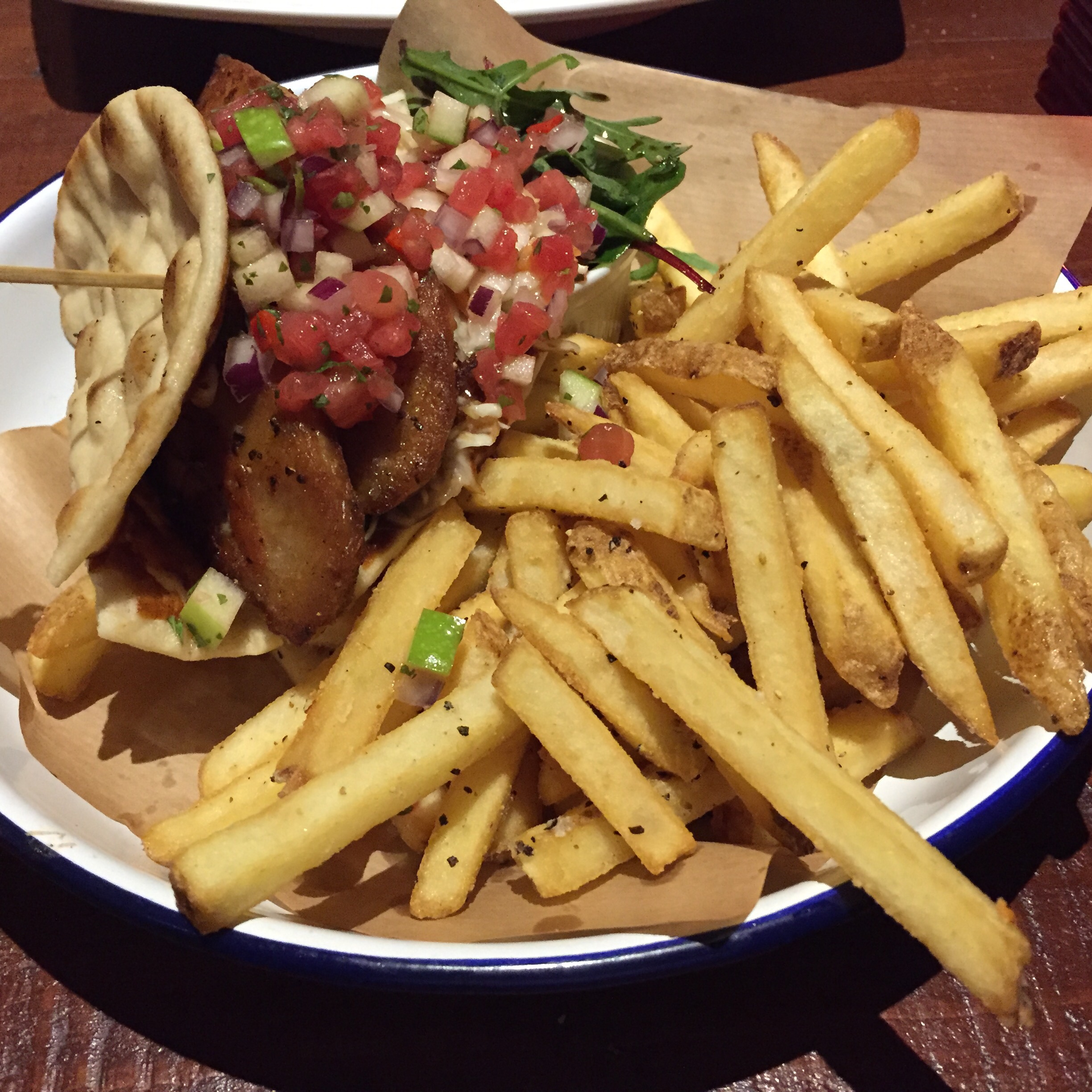 36hr cooked pork belly- served in warm flatbread with signature slaw, watermelon salsa, bourbon glaze and beef dripping ‘cracked’ fries