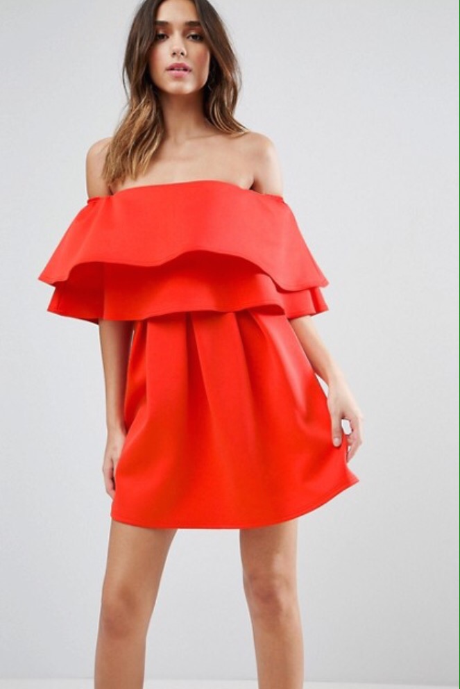 Bardot frill dress, ASOS daaaaamn, this dress is on fuego!! This colour is beautiful for standing out in the sunshine, but the shape is still really feminine and flattering which is perfect for me. I can see this being dressed up or down really easily *adds to ASOS basket*