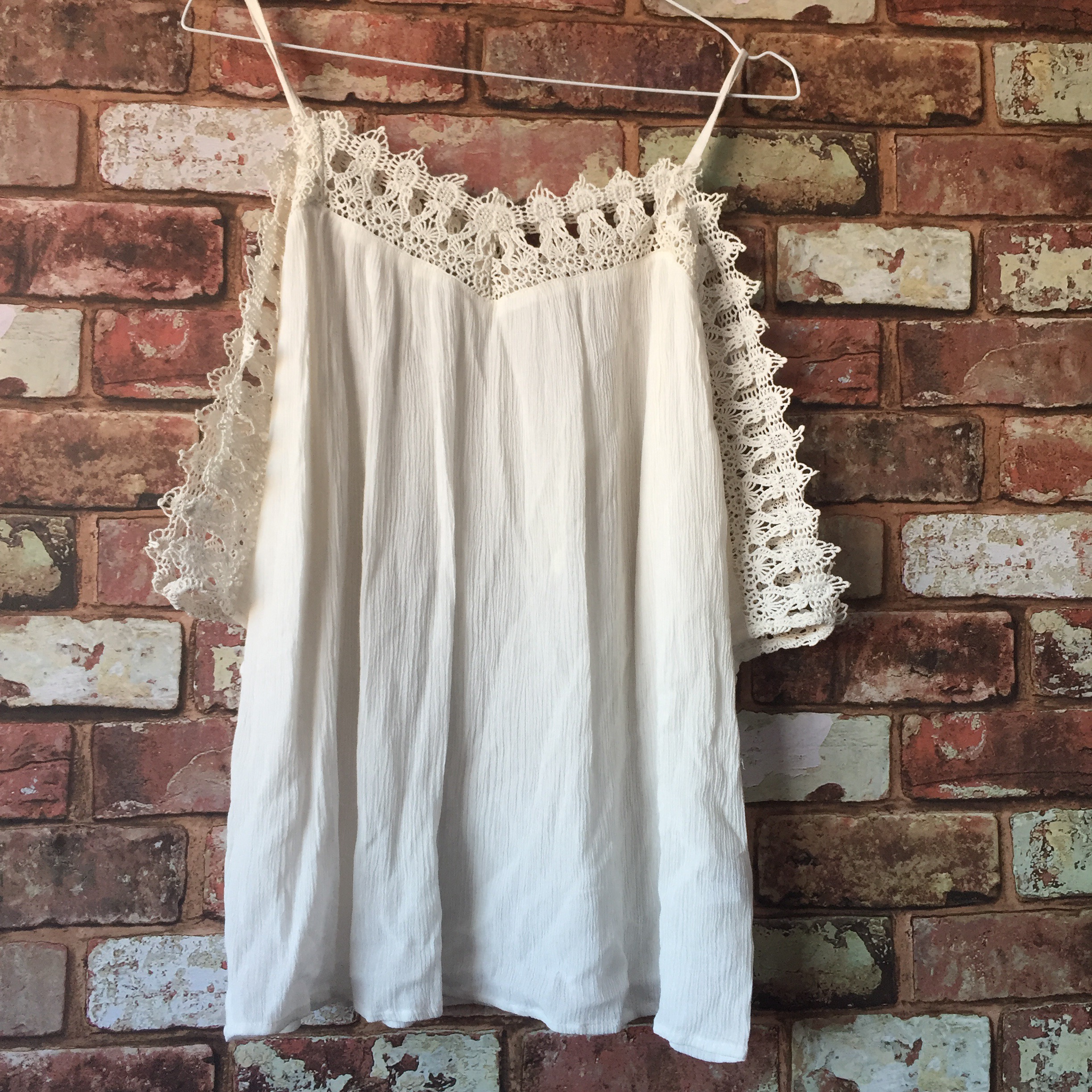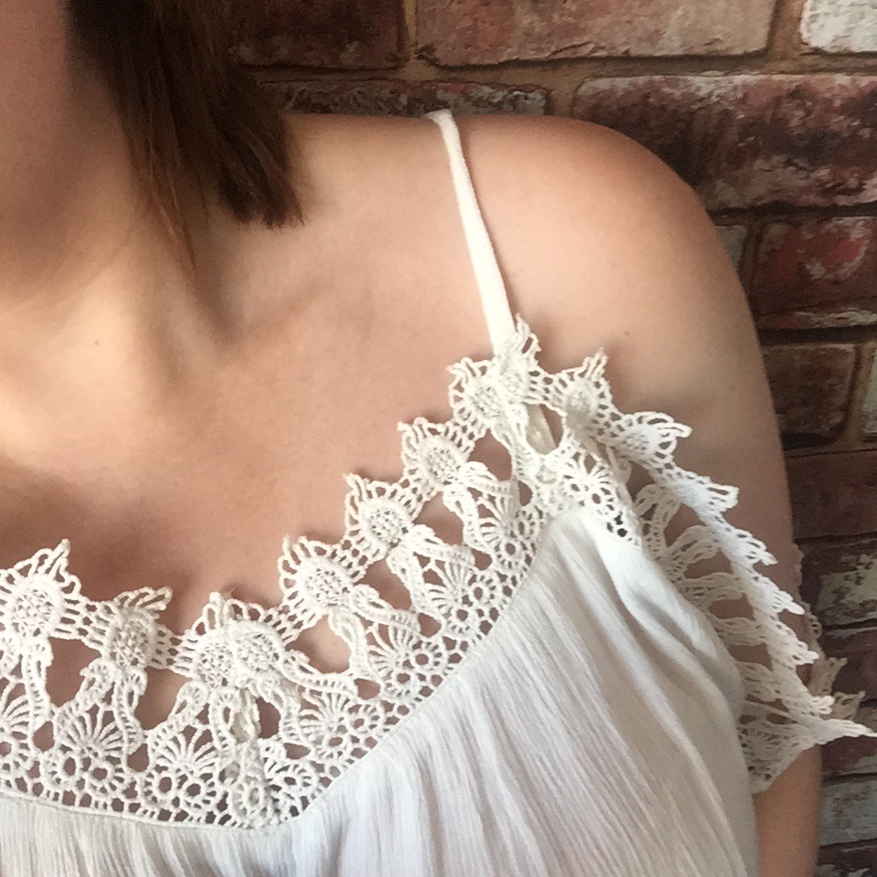 A ‘slight’ change of pace from my fave Bardot style (as recently expressed in this post). The material of this is super lightweight and crinkly so it’s going to be really nice for hot days (presuming the Great British weather grants us a few more!) and the crochet detail at the top will give simple outfits an extra bit of interest.