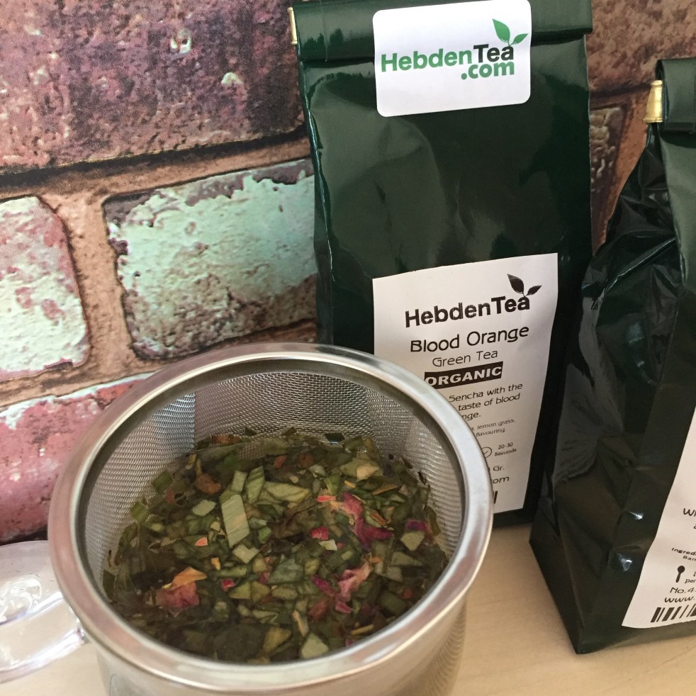 Hebden Tea Glass infuser mug, Blood Orange and Sencha, Chocolate & Rose loose leaf