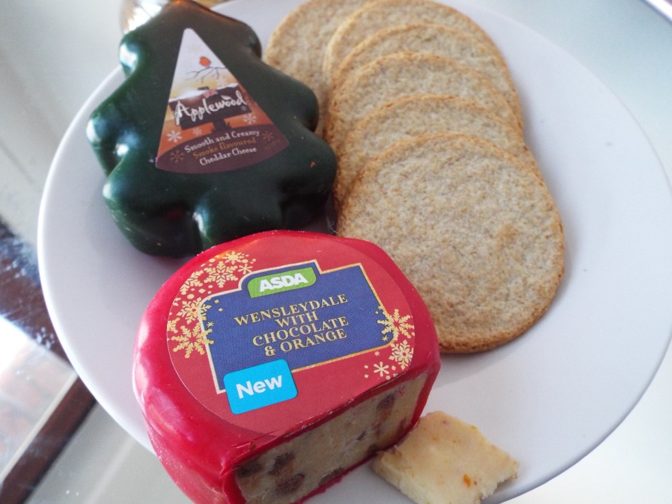 ASDA Wensleydale with chocolate & orange and Christmas tree-shaped Applewood.