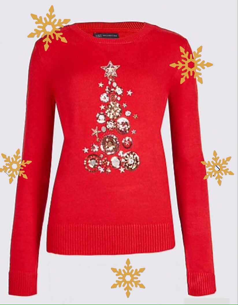 This cherry red Marks & Spencer jumper is still sparkly and festive but in a very understated way, making it perfect for the girl who wants to appear festive within their usual style.