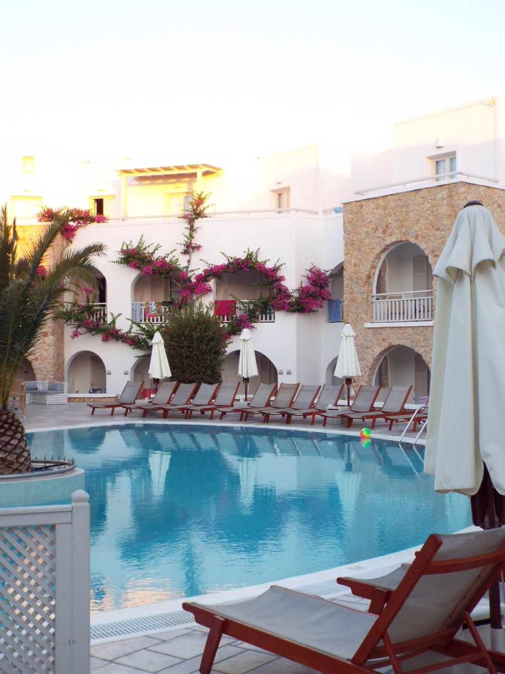 We stayed at Aegean Plaza Hotel which was on a side street about 350m walk from the beach front. The hotel was white, simple and lovely, and the restaurant catered very well for both traditional Greek and international palettes at breakfast time. All of the staff were also lovely.