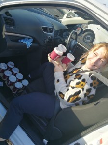 22. For anyone who questions my driving ability – earlier this year I transported 16 cups of hot coffee from Costa along a very busy road and did not spill a drop (here’s a photo of my friend Rachel who was here to witness this crowning moment).