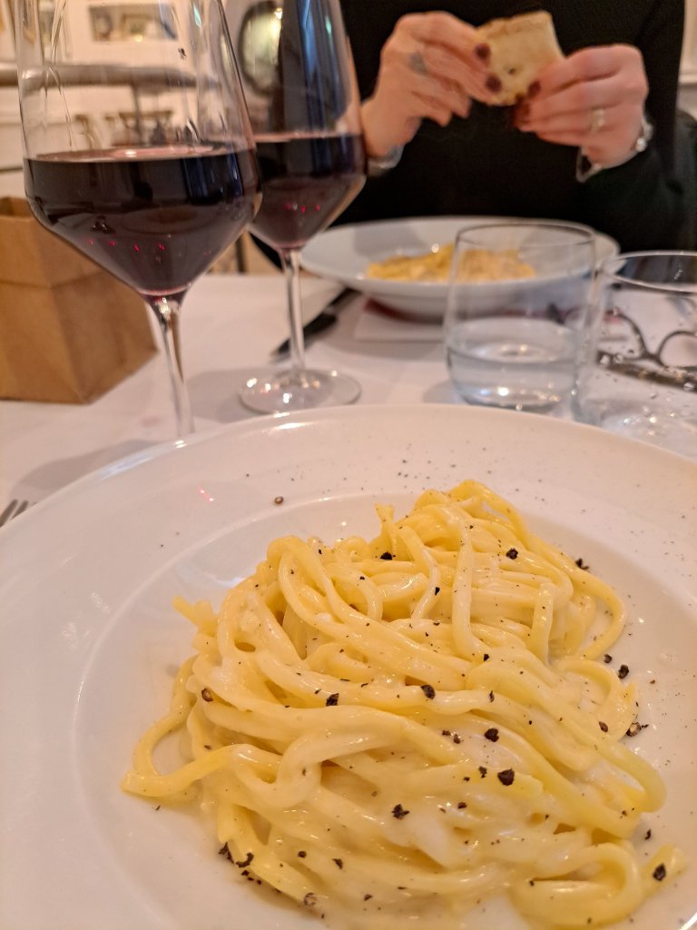 I have to say; as a first meal in a new city to me, the vibe was immaculate. The wine was recommend by the waiter and was delicious (it was called Monica and may be the nicest red wine I’ve ever tasted). I was absolutely DESPERATE to try Cacio e Pepe (pasta in a cheese and pepper sauce) as it’s dish Rome is known for, and it was absolutely unreal! Dessert was basically a deconstructed vanilla slice and equally as delicious.