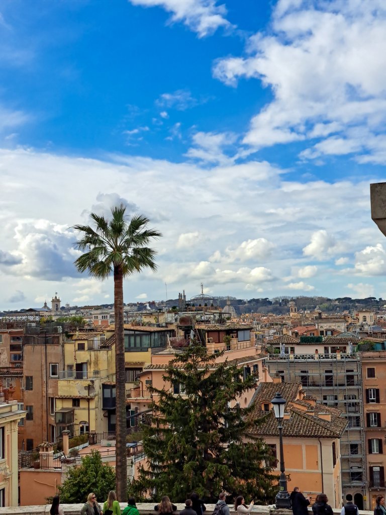 After walking past rows of beautifully curated designer stores, we arrived at the Spanish Steps. I didn’t really get any pictures of the actual steps (there were loads of people walking on them and, well, they’re steps) but I did take some pics of the views of the beautiful orange and yellow coloured buildings from the top after we climbed them.