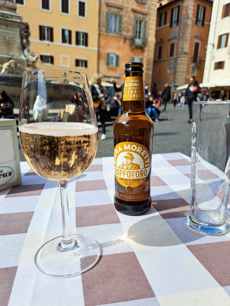 Before we knew it, it was late morning, we’d been walking for a little while and decided it was time for a pit stop. We managed to get a really great table at a restaurant opposite the Pantheon where we treated ourselves to a beer and glass of prosecco.