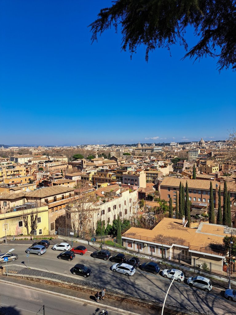 It was well worth taking the time to come back and visit the fountain up close. As you can see, it’s stunning, I think it has a lot of similarities to Trevi without the ornate statues. But, unlike Trevi, the area has another USP that made it an extra enjoyable place to be on a sunny Sunday morning – a view point looking out over the Trastevere area an over to Rome (the photos below doesn’t do it any justice at all).