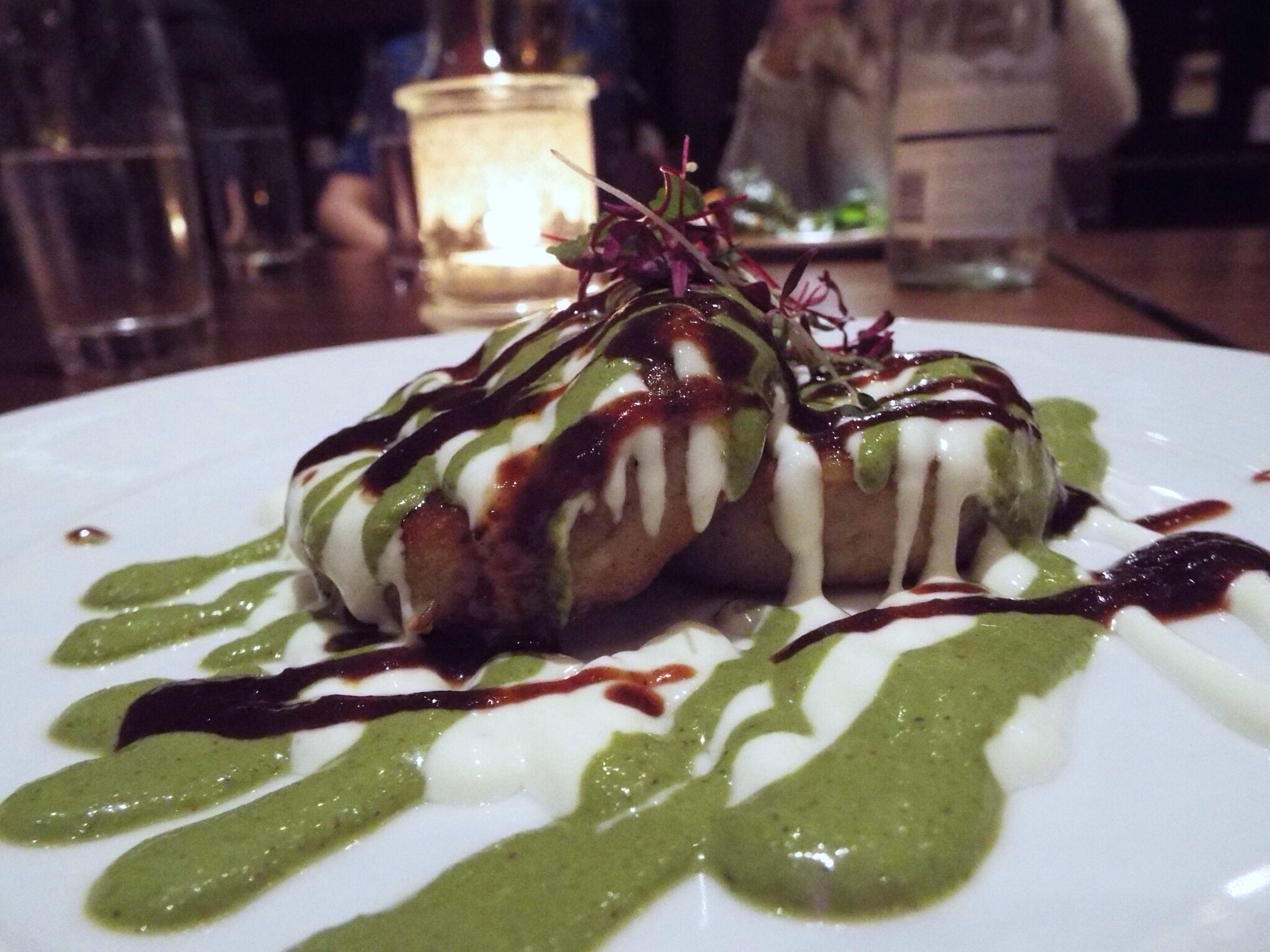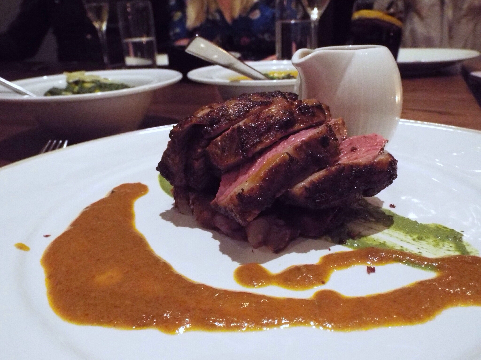 I’m gonna skip to the good bit – it tasted as good as it looks! Cumin and potato cakes wrapped around moorish soft cheese drizzled with tasty chutney. This is an amazing combo of comfort food with fine dining. For me, it doesn’t get much better.