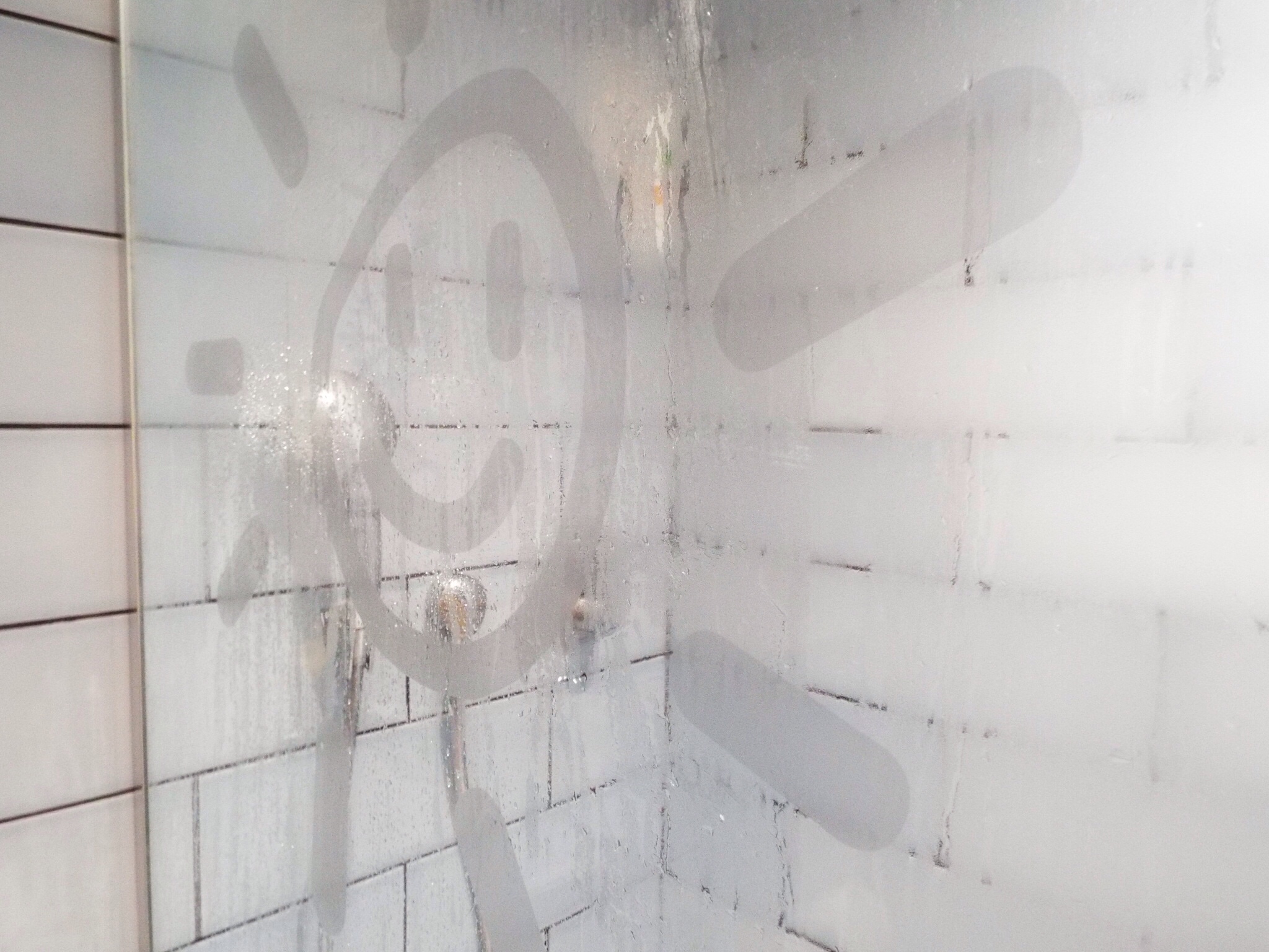 The shower was a great size and had a lovely waterfall shower head, as well as this cute little ‘mist drawing’ on the screen.