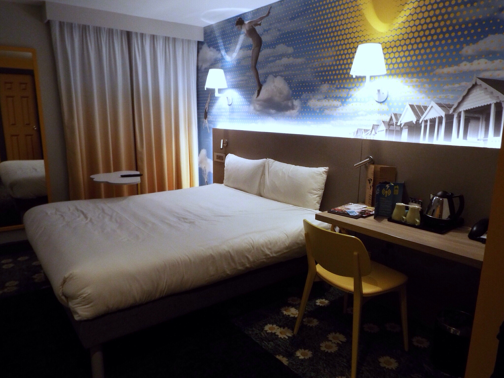 The hotel has been recently re-styled in typical quirky Ibis ‘styles’ as well as looking fun it also gently pokes fun at the city’s penchant for wet weather…starting with the handles on the front door!