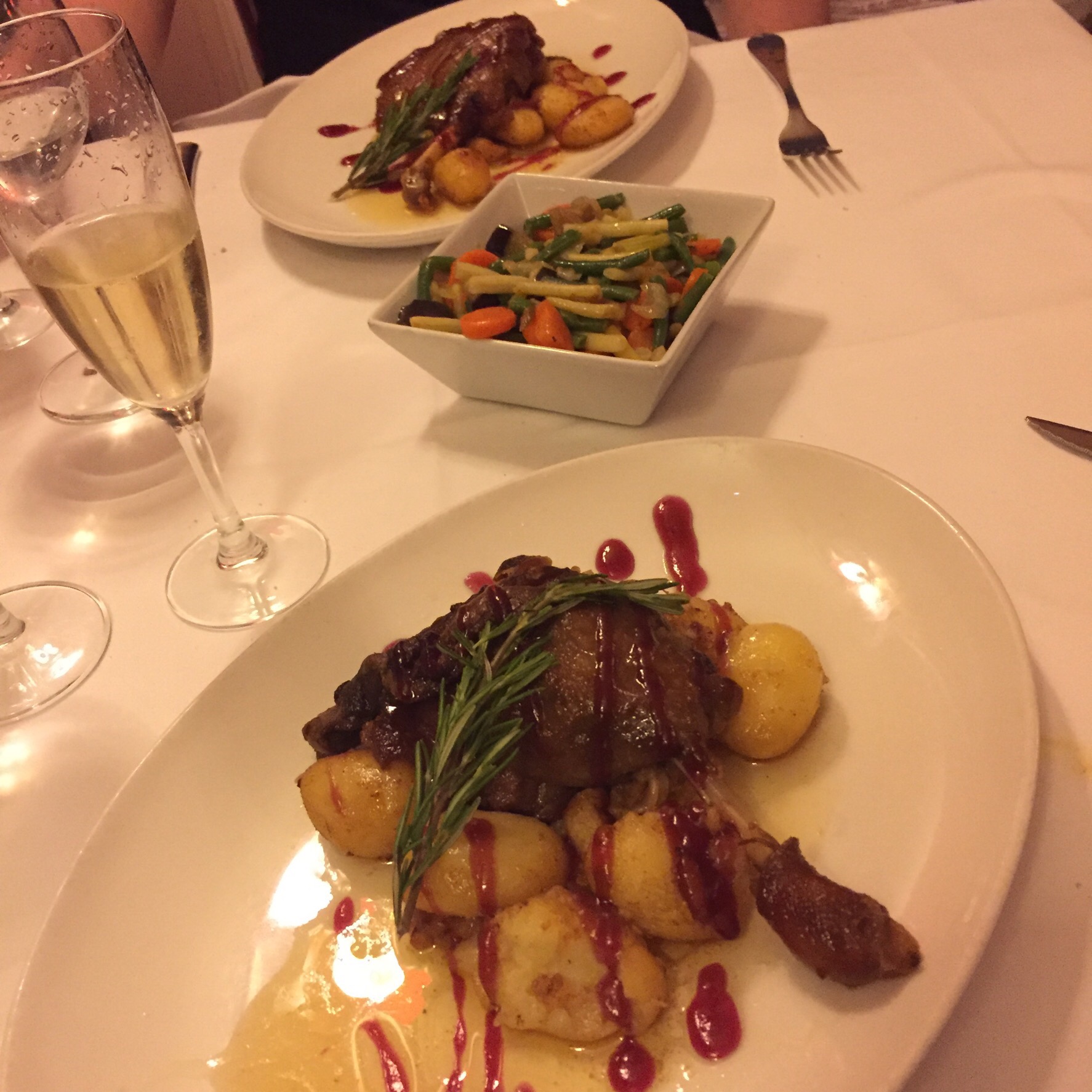 Main – rump of lamb served with pan fried gnocchi, peas, garlic jus and a side of vegetables. I’m such a fan of gnocchi but was initially a bit sceptical about pairing it with lamb, but it actually worked pretty well. A really filling and warming choice that filled me up but didn’t leave me feeling overstuffed and wanting to crash out in a tired heap.
