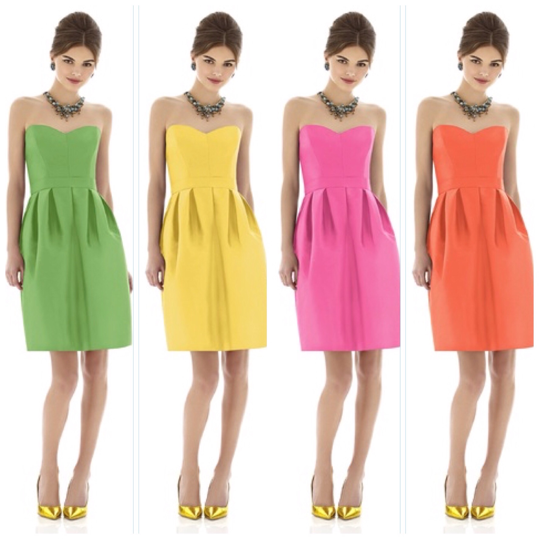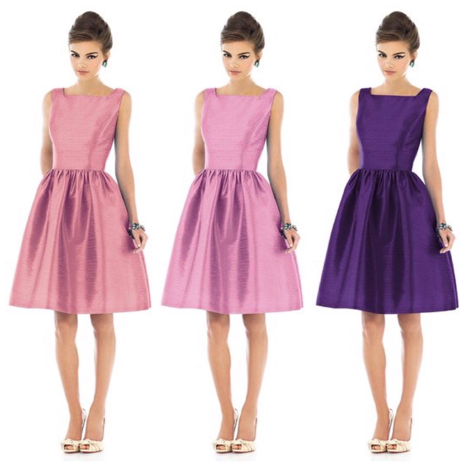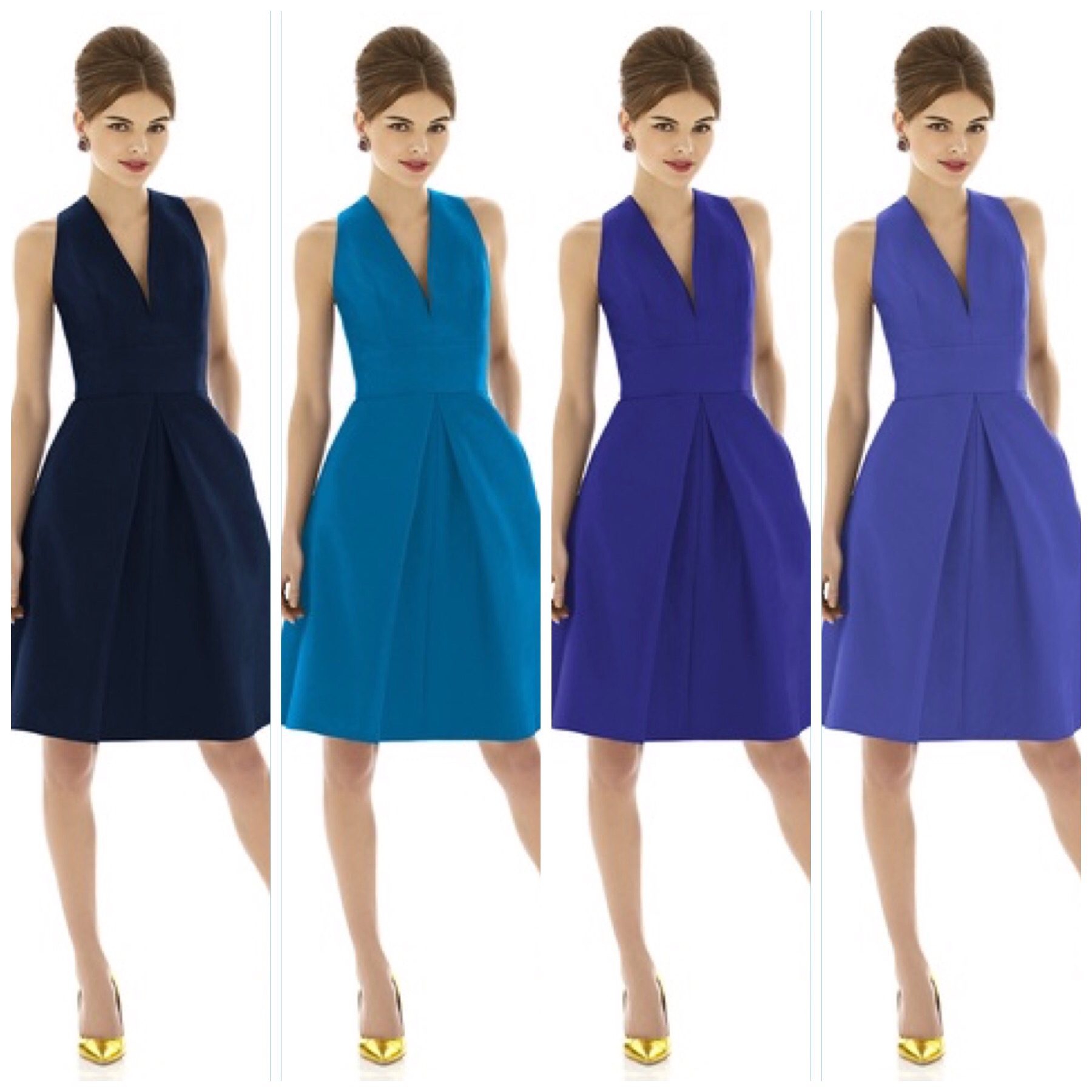 I like the look of the same colour in different shades as it strikes a really nice balance between each girl standing out and also looking pulled together and cohesive. Especially if the dresses are all in one style, this Audrey Hepburn esque shape is totally gorgoeus for the pink looks. The blue looks are just as classic but may be more flattering around the neckline for some body shapes. Both of my fave colours!